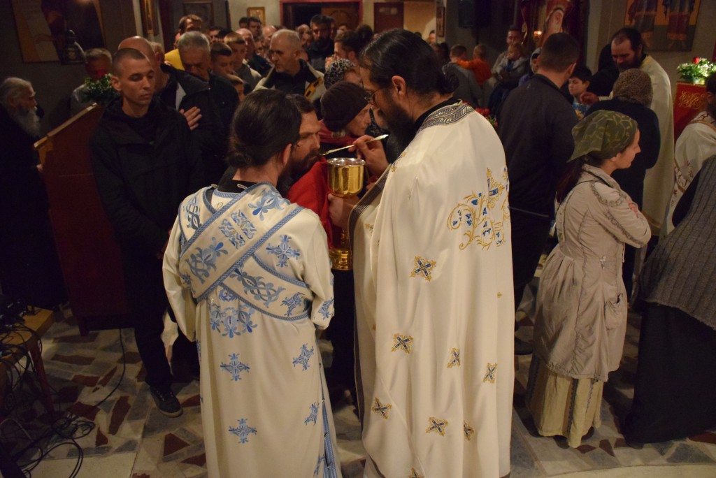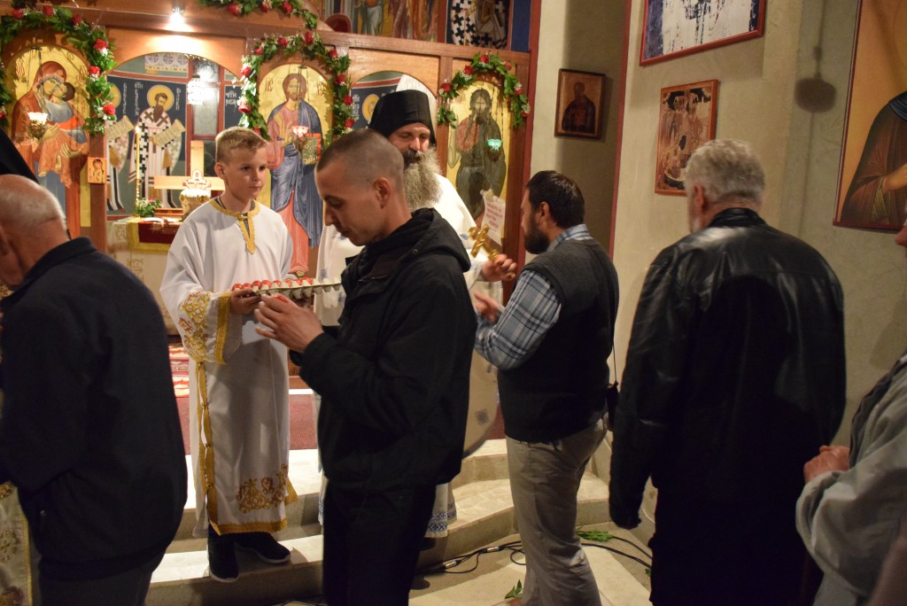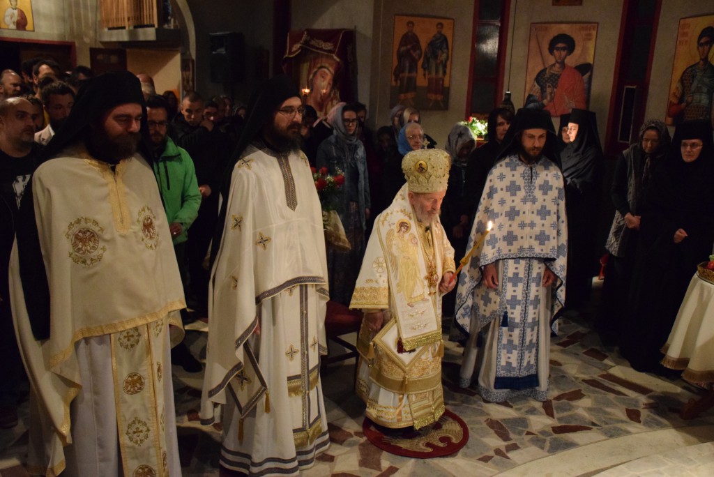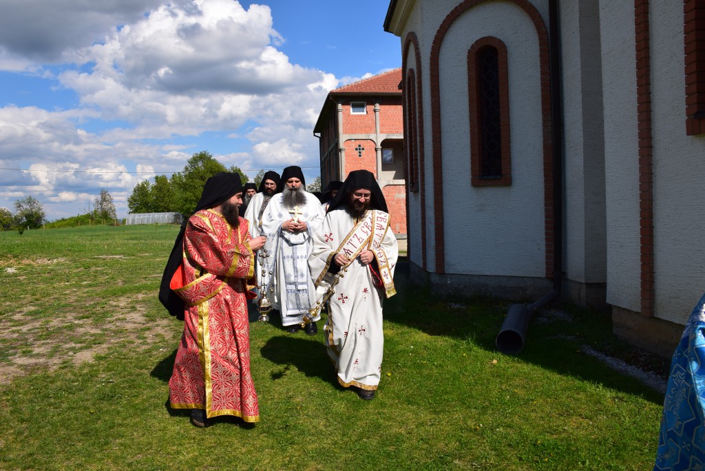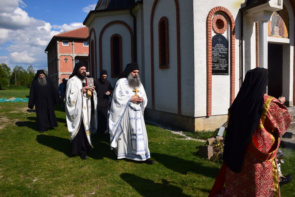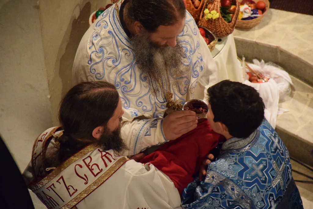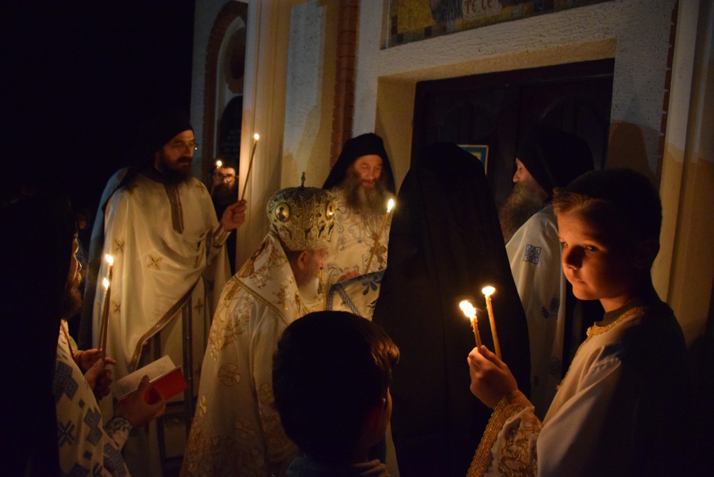 Васкршњу посланицу Епископа Артемија, хорепископа: Николаја, Максима и Наума прочитао је архимандрит Варнава. После Литургије Владика Артемије је извршио чин освећења сира и јаја.