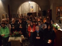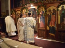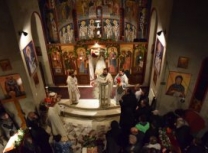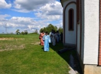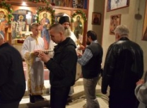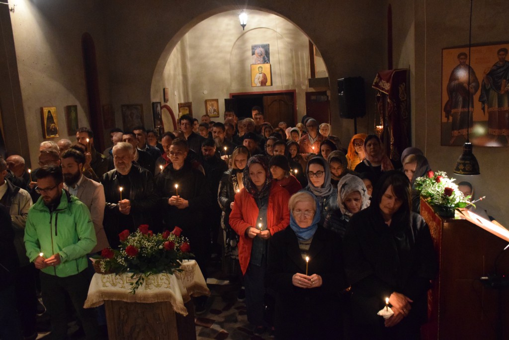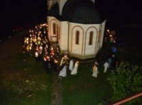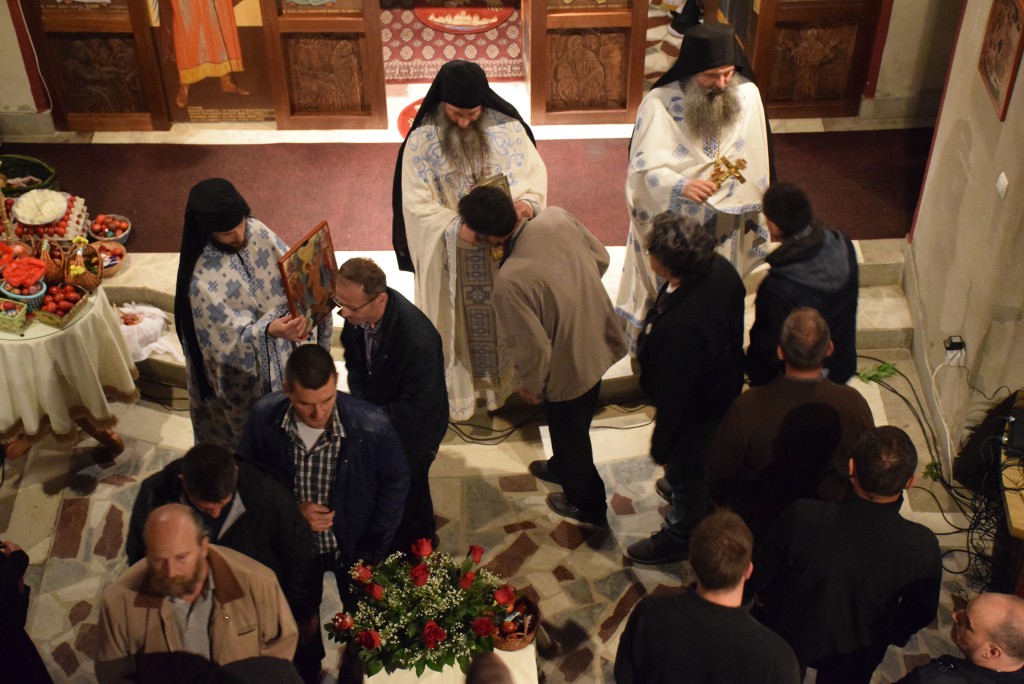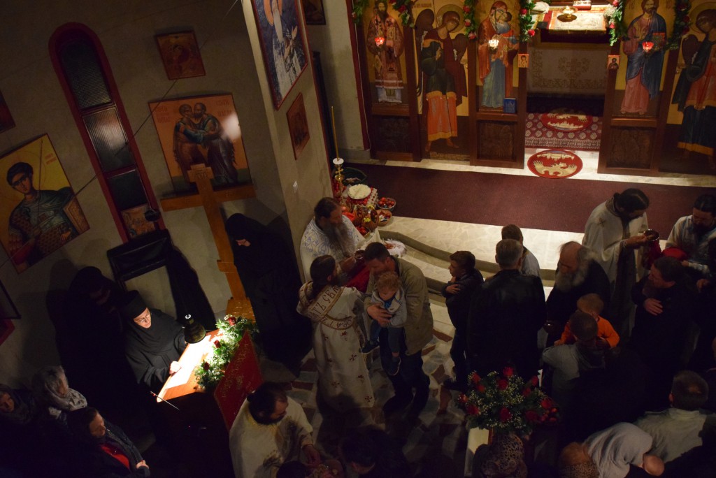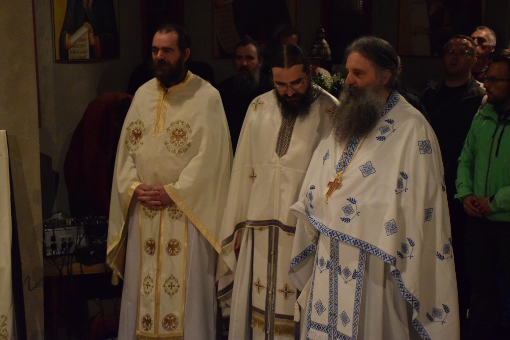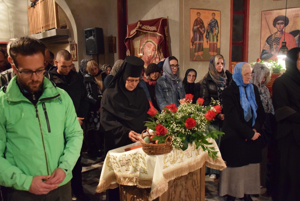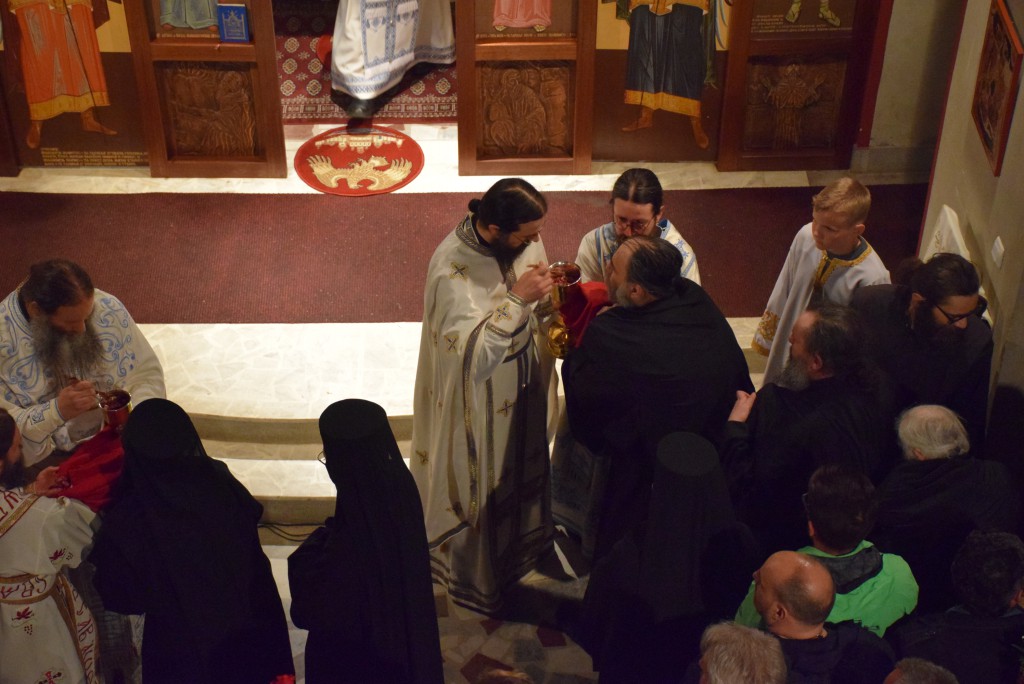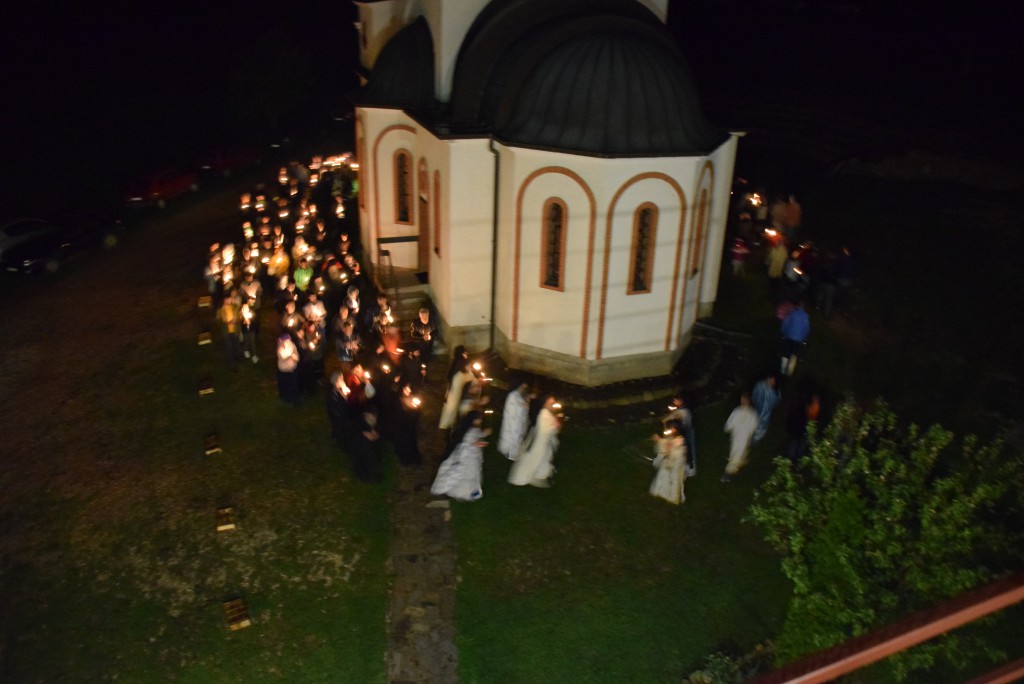 Васкршњу посланицу Епископа Артемија, хорепископа: Николаја, Максима и Наума прочитао је архимандрит Варнава. После Литургије Владика Артемије је извршио чин освећења сира и јаја.
