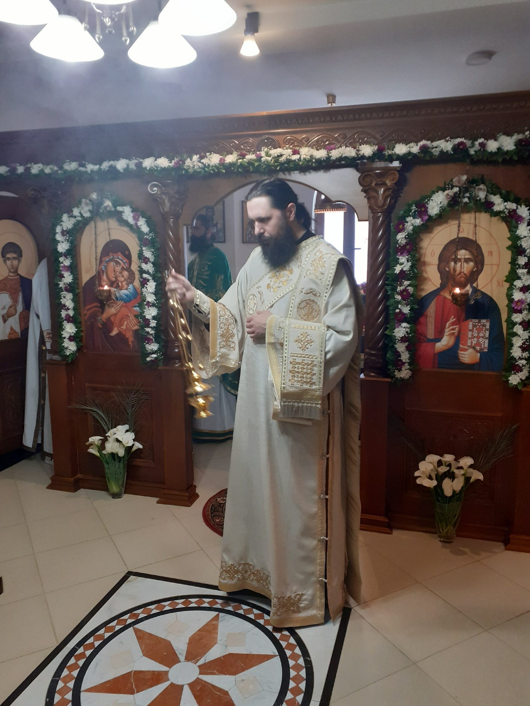 На Васкрсни уторак, 26. априла, Његово Преосвештенство Епископ рашко-призренски у егзилу Г.Г. Ксенофонт служио је Свету Архијерејску Литургију у манастируНова Никеја у Лелићу уз саслужење архимандрита Варнаве (Димитријевића), протосинђела Симеона (Весића) и јерођакона Георгија (Радојичића). Литургији је присуствовало око 50 светосаваца.
