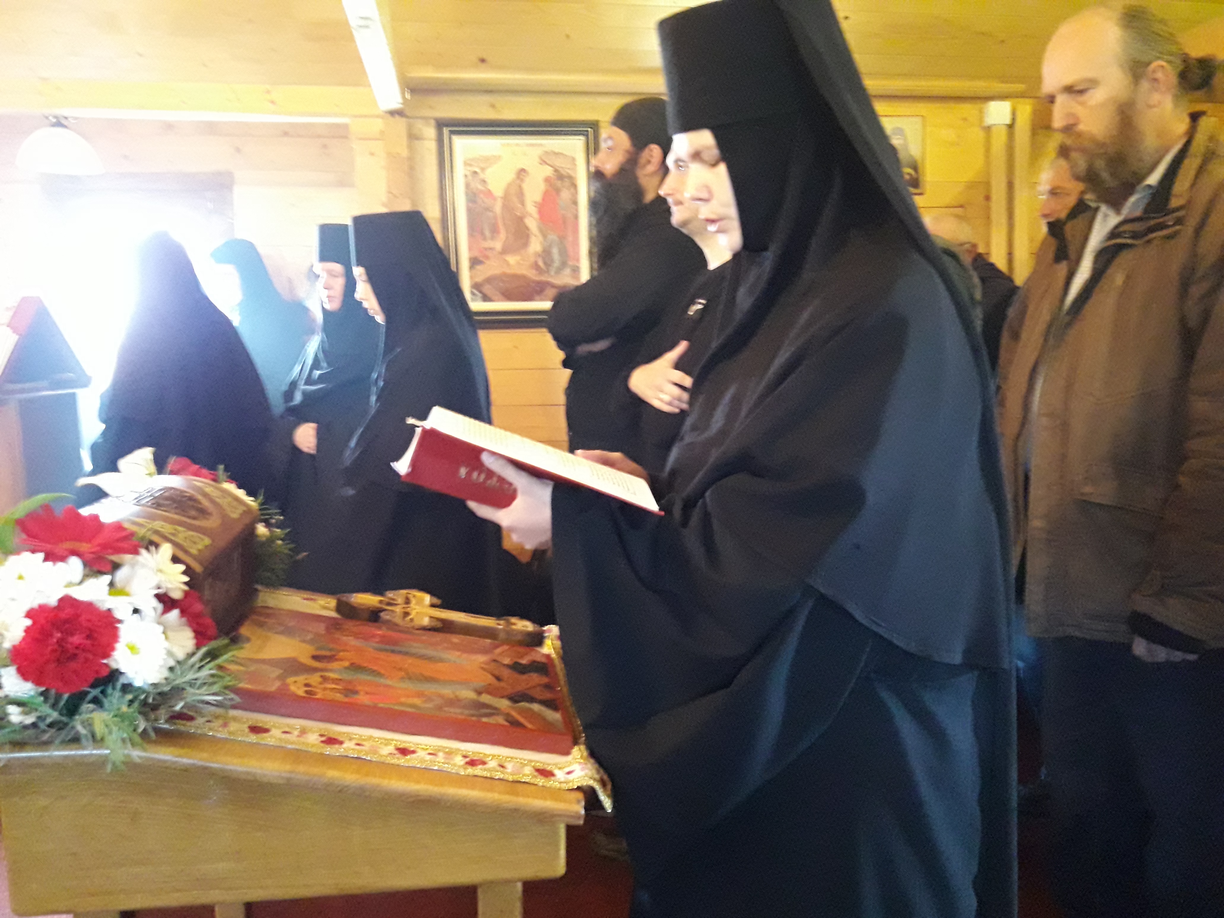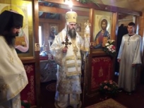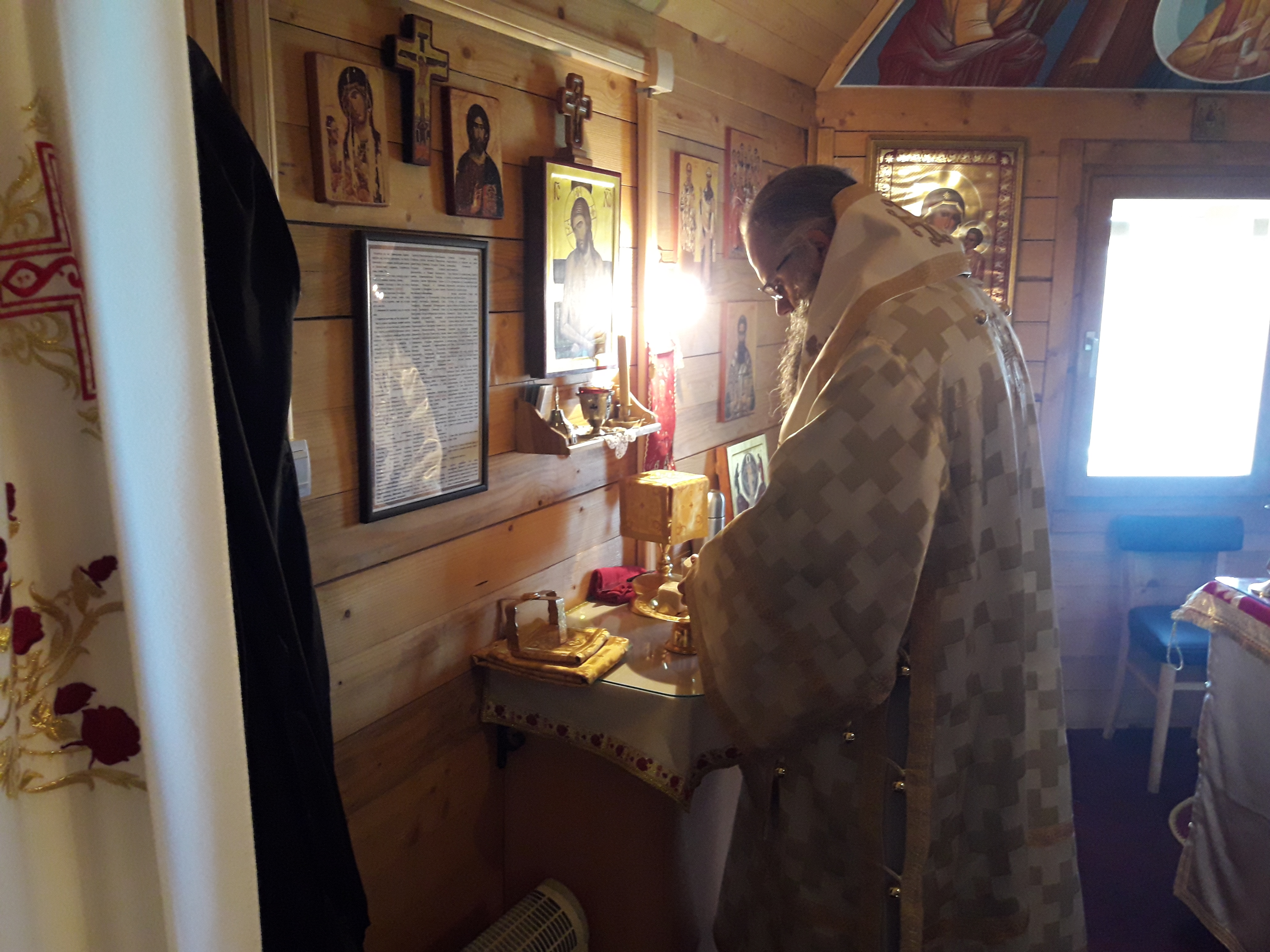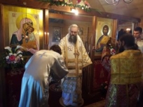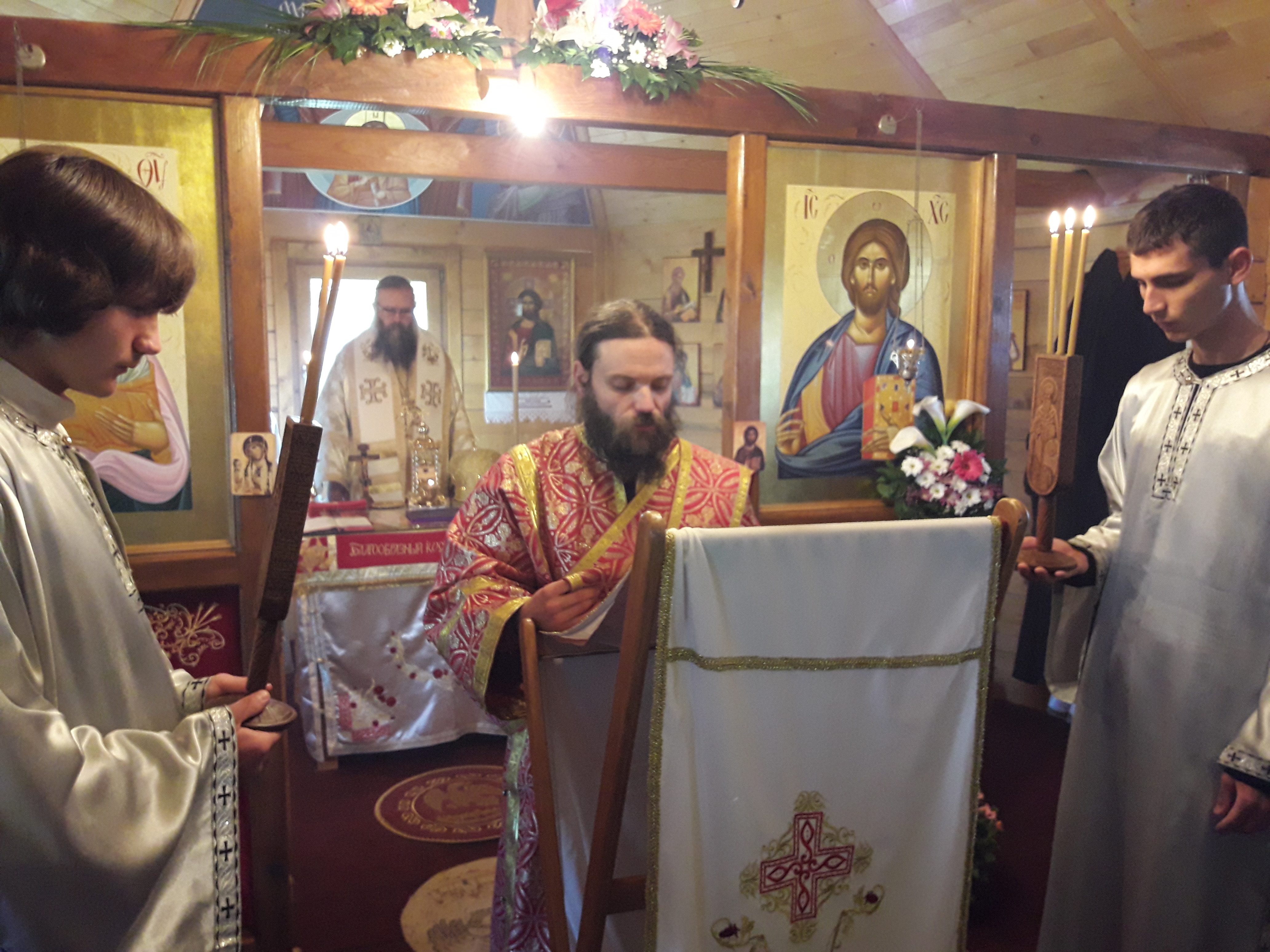 На Васкрсни уторак, 5/18. априла, Његово Преосвештенство хорепископ новобрдски и панонски Г.Г. Максим служио је Свету Архијерејску Литургију у манастиру Светог Преображења Господњег у Леушићу уз саслужење протосинђела Иринеја (Ристића) и јерођакона Онуфрија (Ђурђева). Литургији је присуствовало око 50 светосаваца.