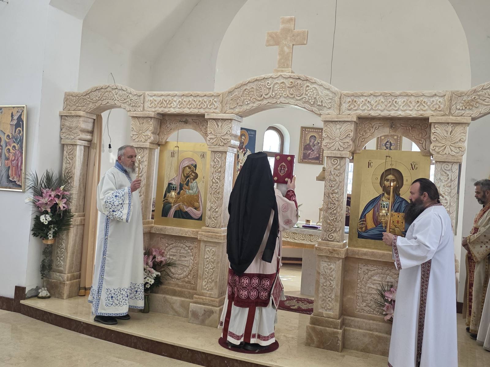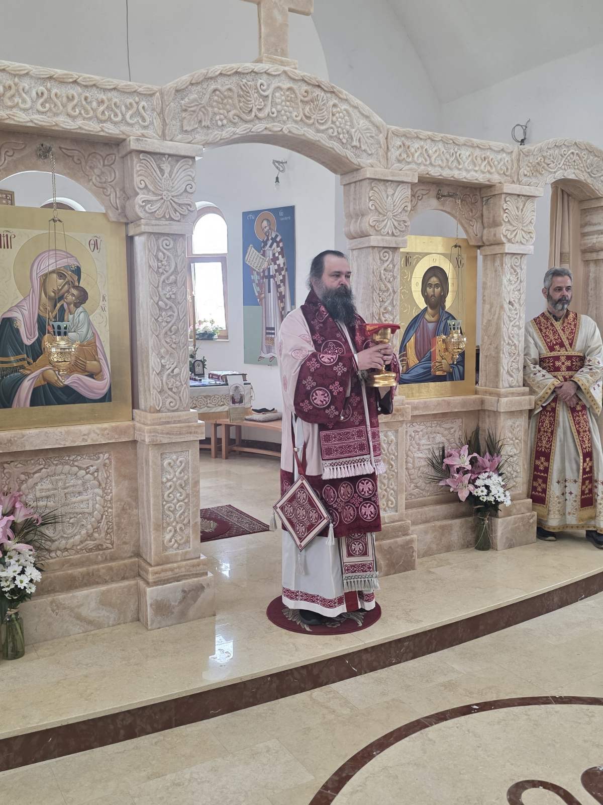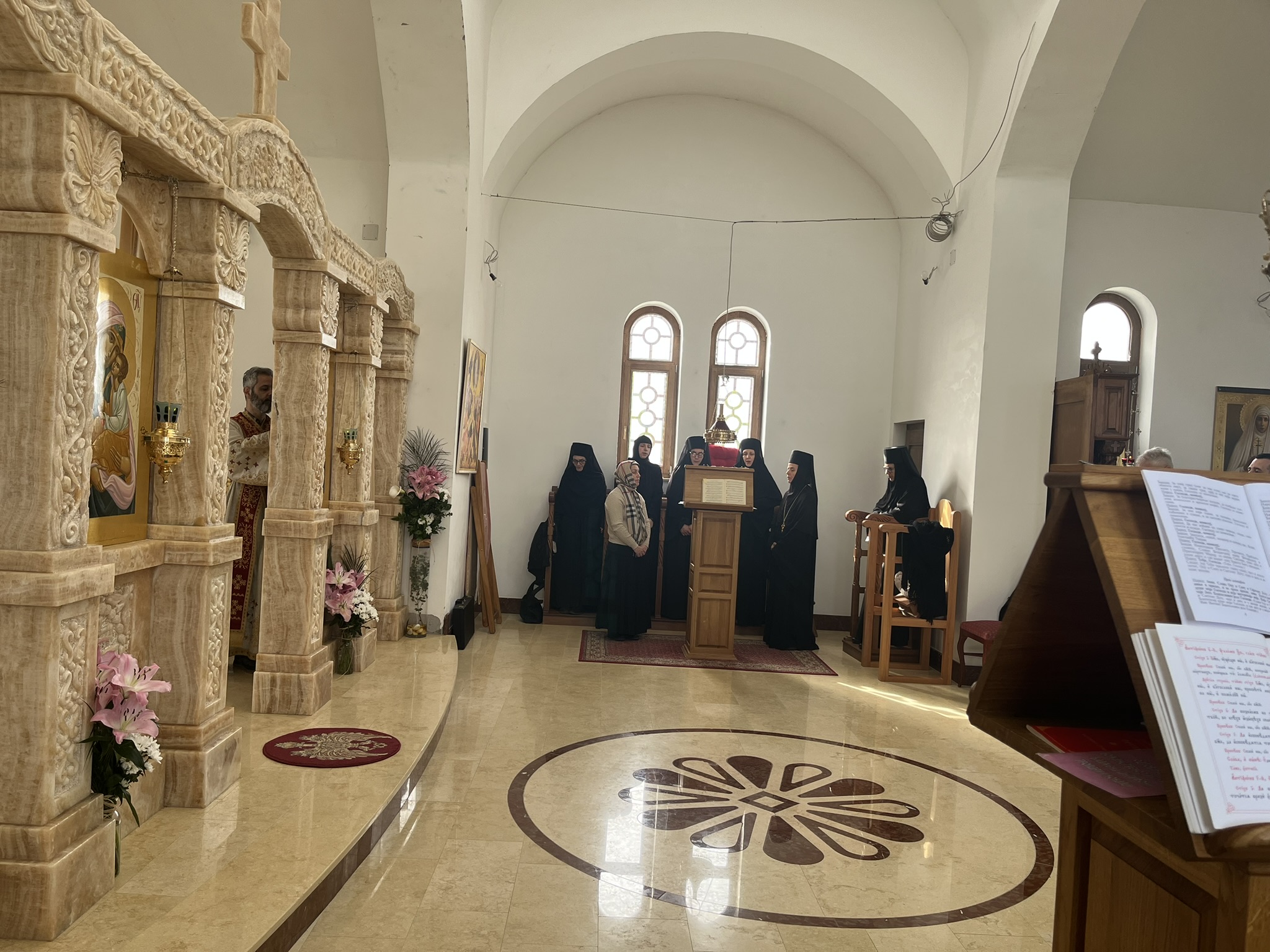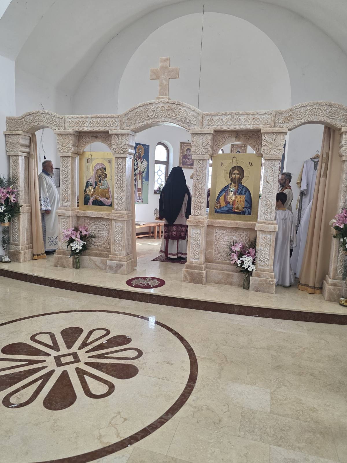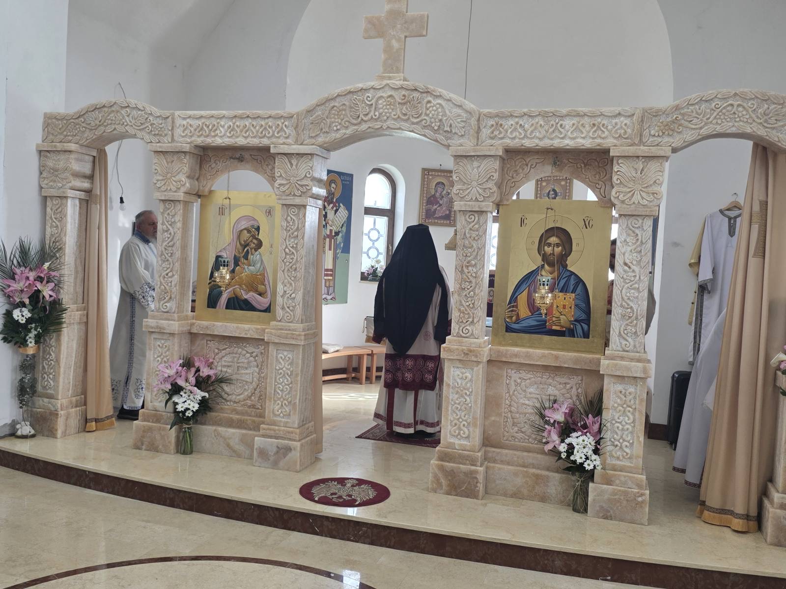 Другог дана Васкрса, на Васкршњи понедељак, 13. априла, Његово Преосвештенство Епископ рашко-призренски у егзилу Г.Г. Ксенофонт служио је Свету Архијерејску Литургију у манастиру Светог Преображења Господњег у Леушићима. Литургији је присуствовало око 70 верника. Најмлађи од њих сјединили су се са васкрслим Господом кроз Свето Причешће.
