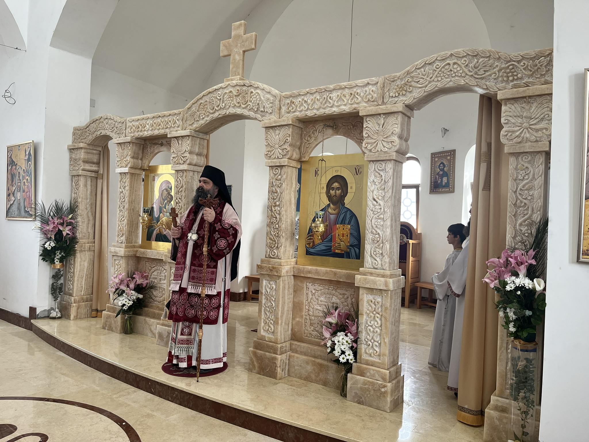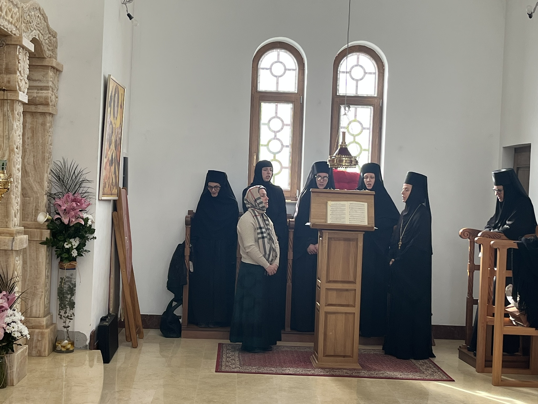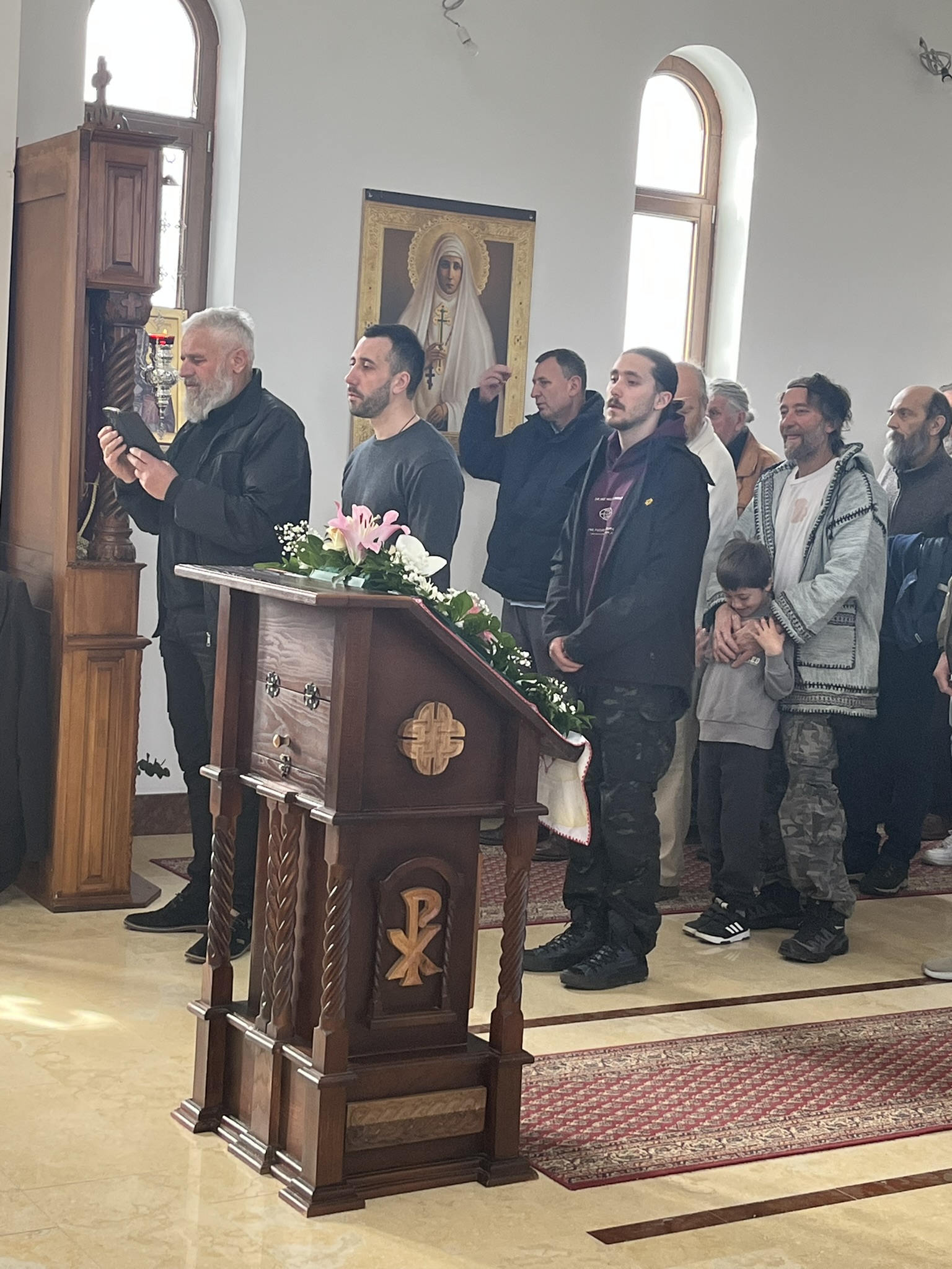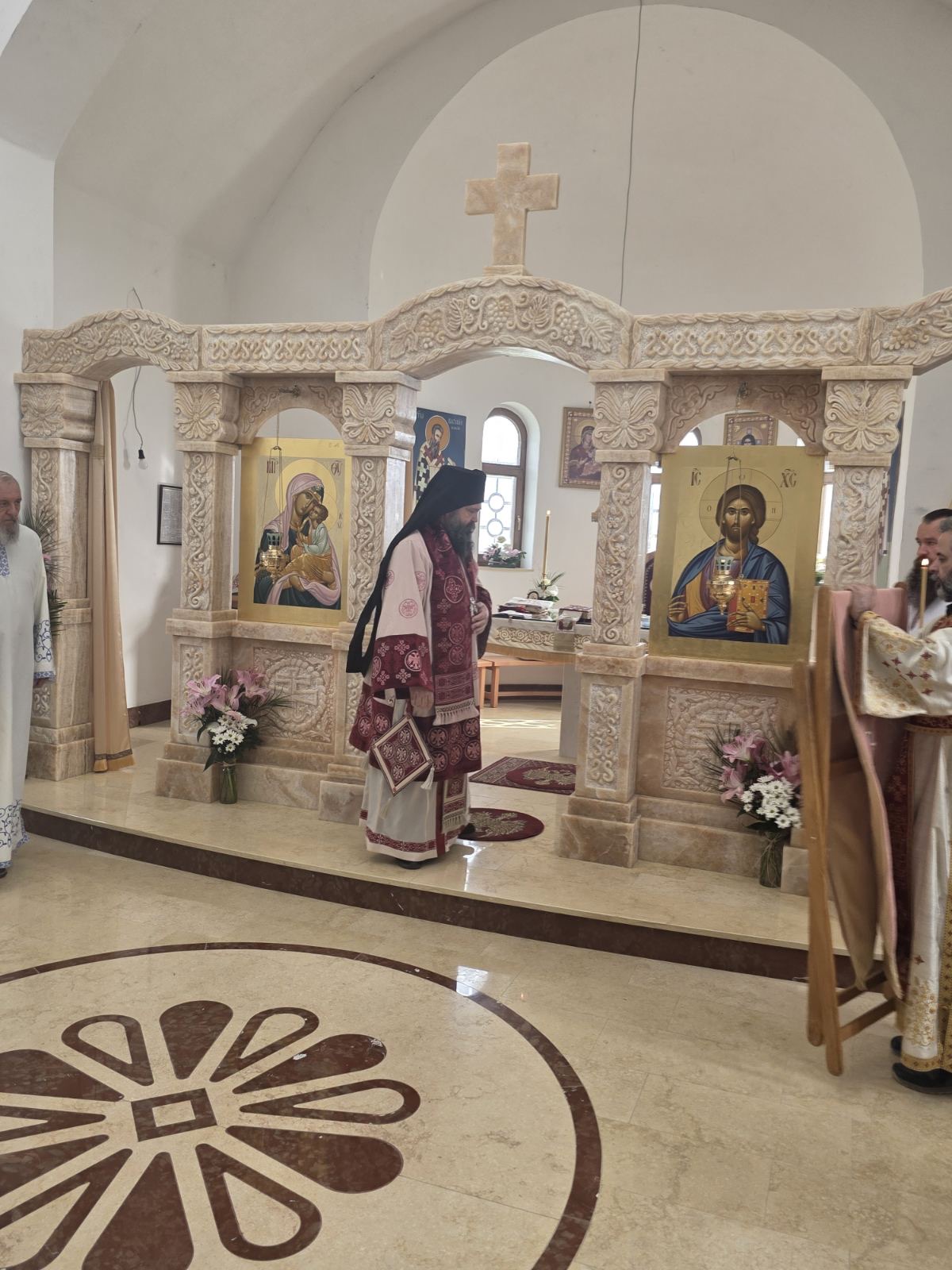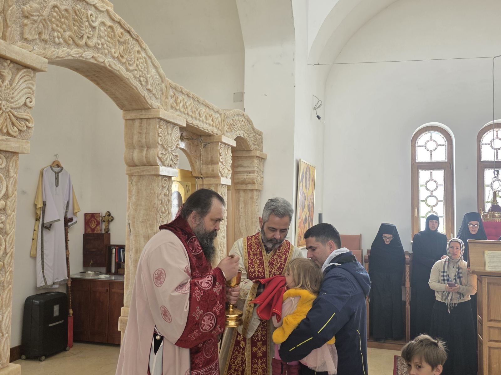Другог дана Васкрса, на Васкршњи понедељак, 13. априла, Његово Преосвештенство Епископ рашко-призренски у егзилу Г.Г. Ксенофонт служио је Свету Архијерејску Литургију у манастиру Светог Преображења Господњег у Леушићима. Литургији је присуствовало око 70 верника. Најмлађи од њих сјединили су се са васкрслим Господом кроз Свето Причешће.