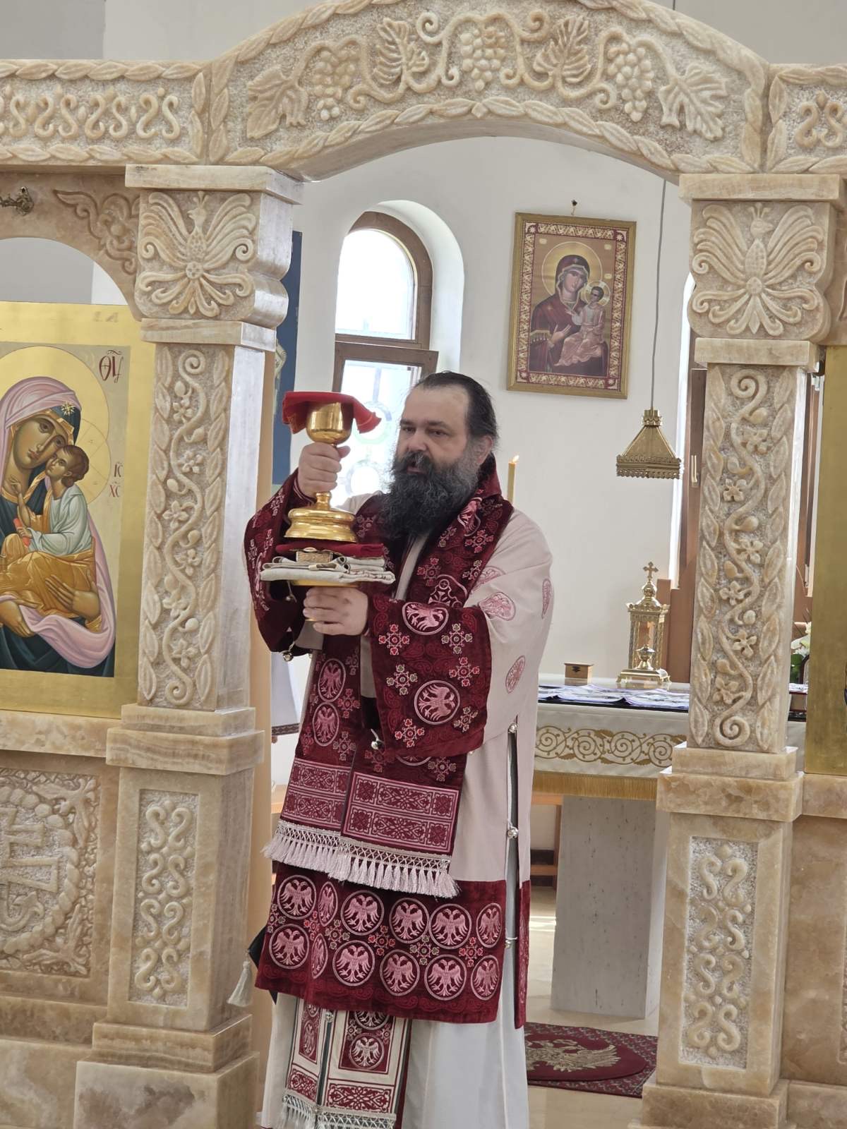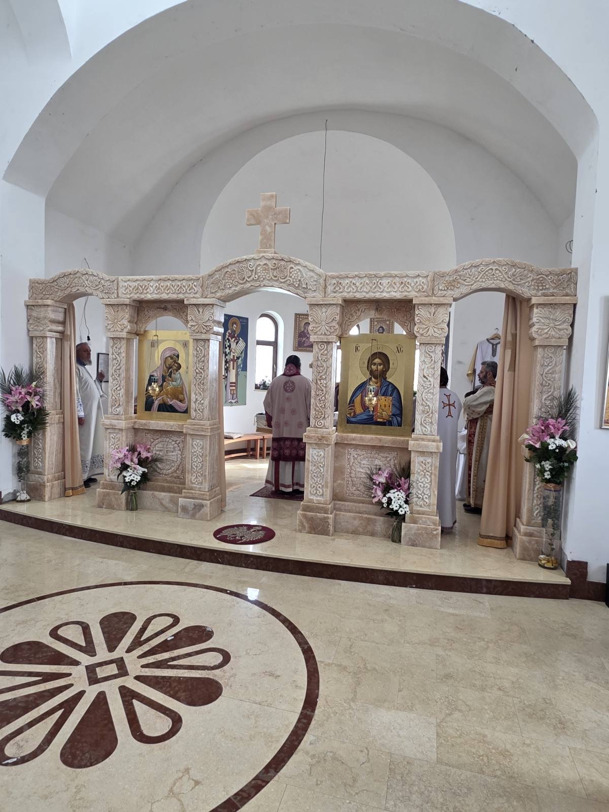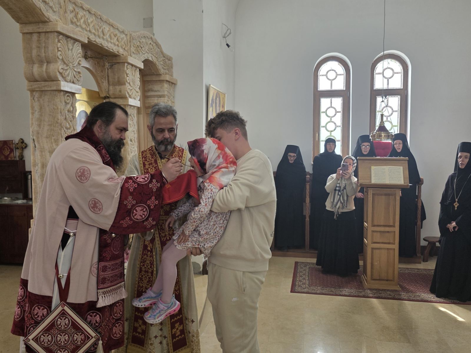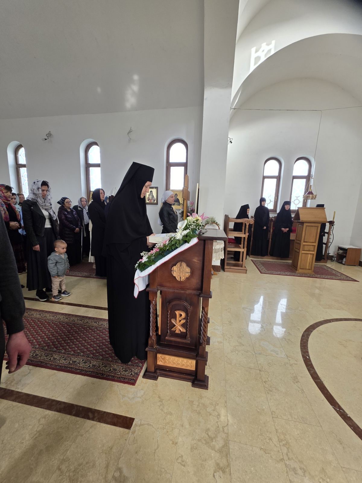Другог дана Васкрса, на Васкршњи понедељак, 13. априла, Његово Преосвештенство Епископ рашко-призренски у егзилу Г.Г. Ксенофонт служио је Свету Архијерејску Литургију у манастиру Светог Преображења Господњег у Леушићима. Литургији је присуствовало око 70 верника. Најмлађи од њих сјединили су се са васкрслим Господом кроз Свето Причешће.