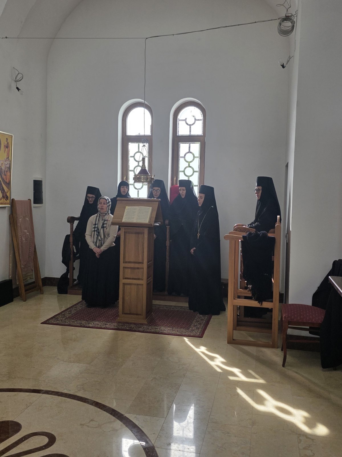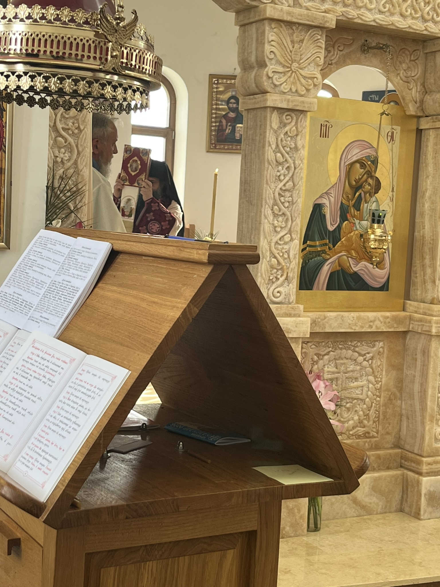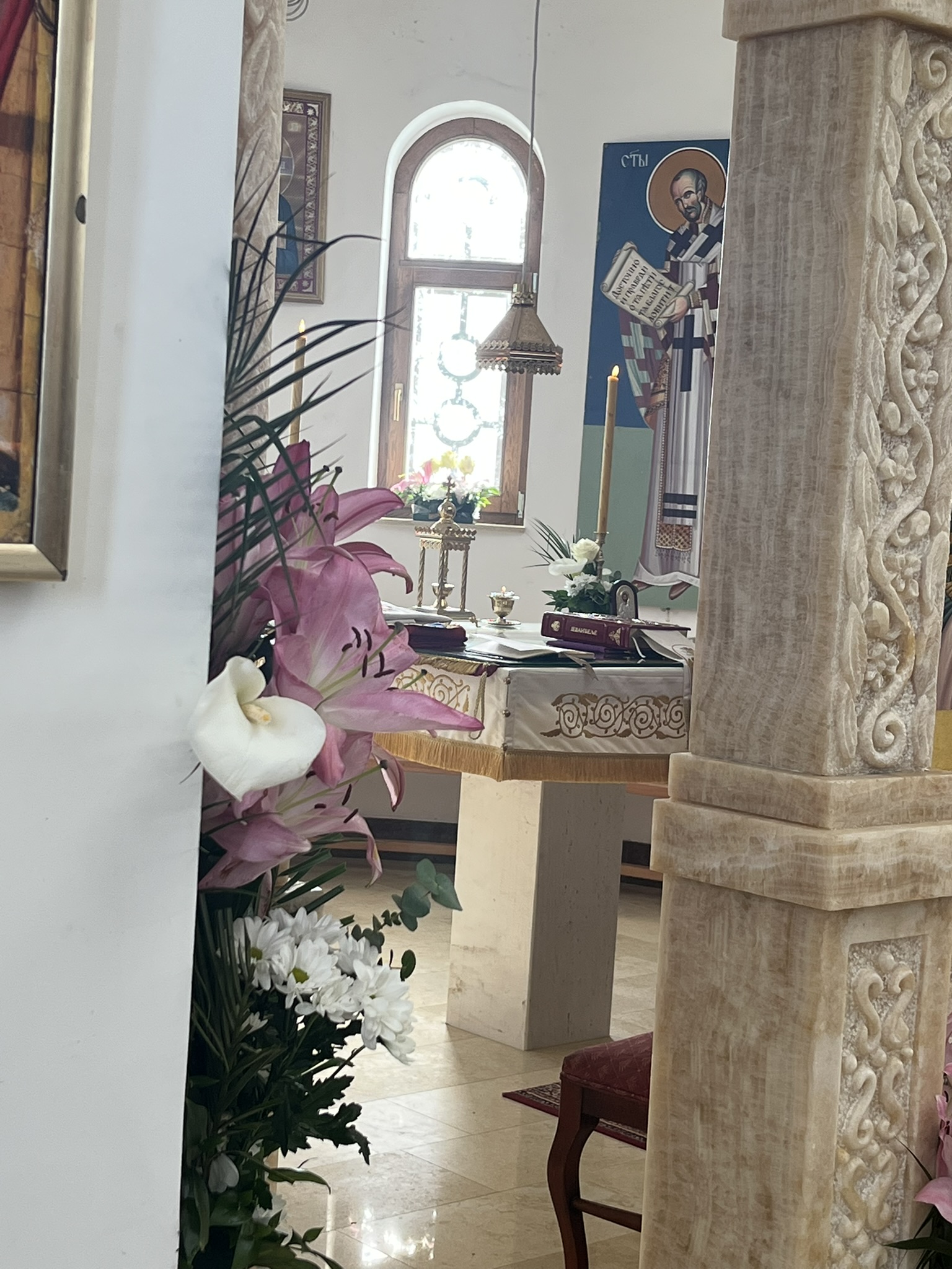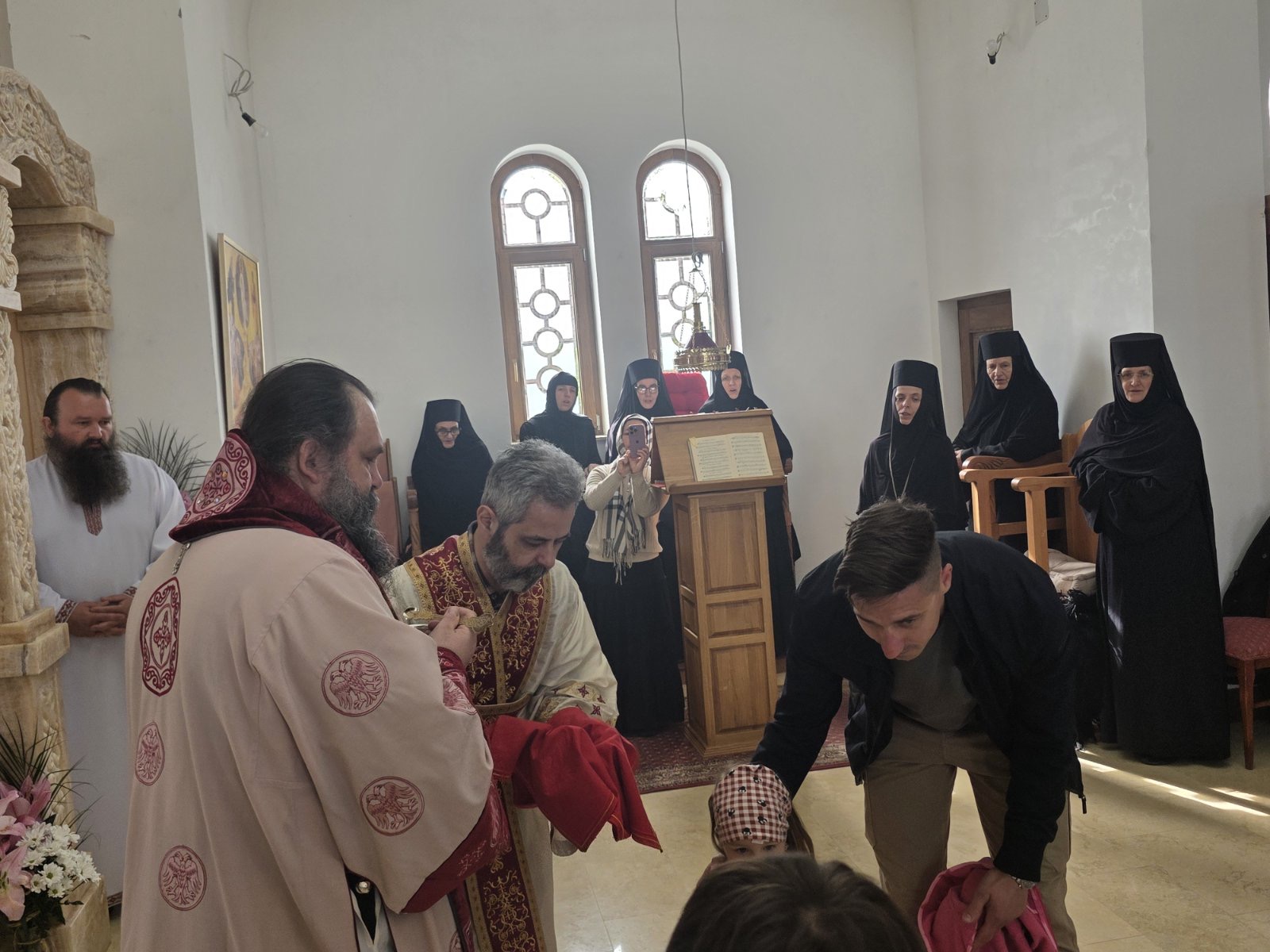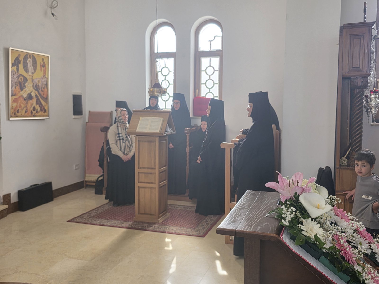 Другог дана Васкрса, на Васкршњи понедељак, 13. априла, Његово Преосвештенство Епископ рашко-призренски у егзилу Г.Г. Ксенофонт служио је Свету Архијерејску Литургију у манастиру Светог Преображења Господњег у Леушићима. Литургији је присуствовало око 70 верника. Најмлађи од њих сјединили су се са васкрслим Господом кроз Свето Причешће.