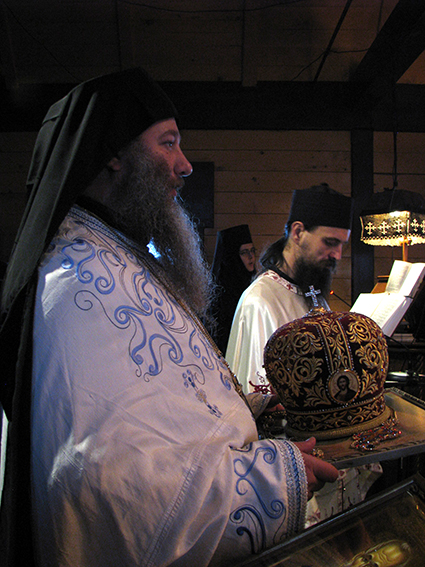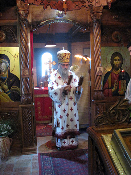 На крају архијерејске литургије владика Артемије је пожелео срећан празник свима, а онда је дао благослов да владика Николај одржи беседу.