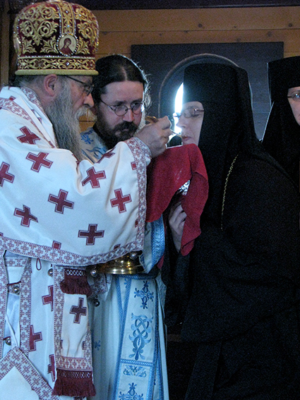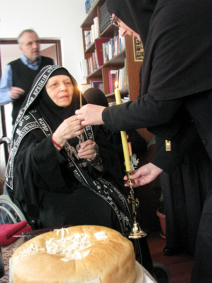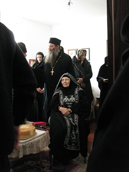 Након службе уследила је трпеза љубави за све присутне. Након трпезе љубави, у салону манастирског конака, Владика Артемије је извршио чин резања славског колача и благосиљања жита које су у част Пресвете Дјеве Марије принеле схимонахиња Марија и монахиња Јулита.