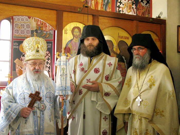 Његовом Преосвештенству саслуживало је седам јеромонаха и три јерођакона, клирика наше Епархије у егзилу.