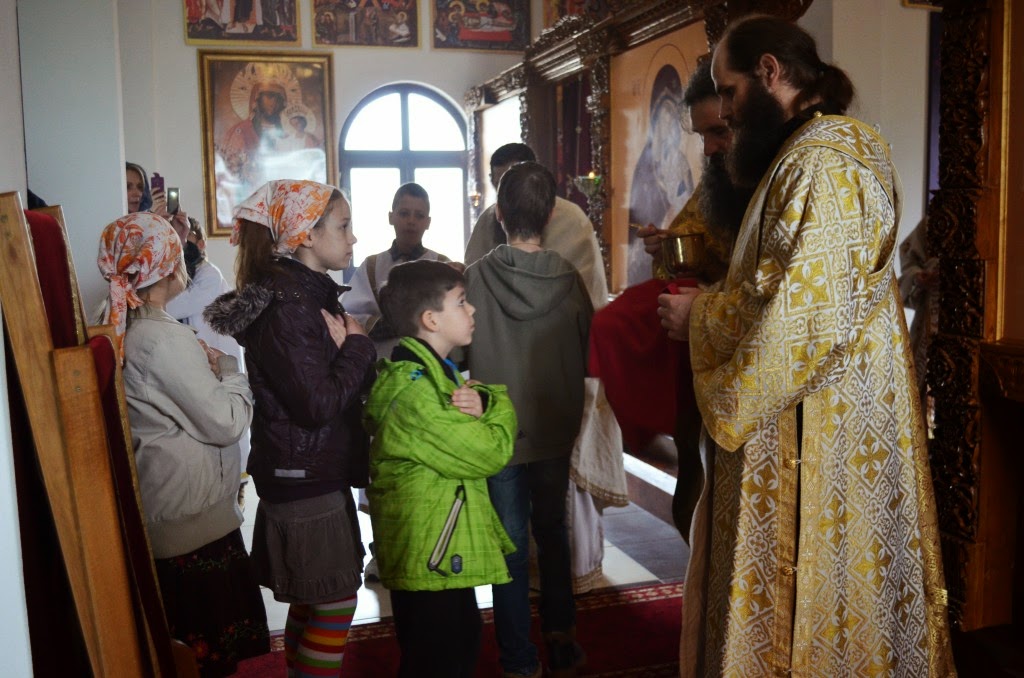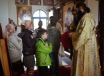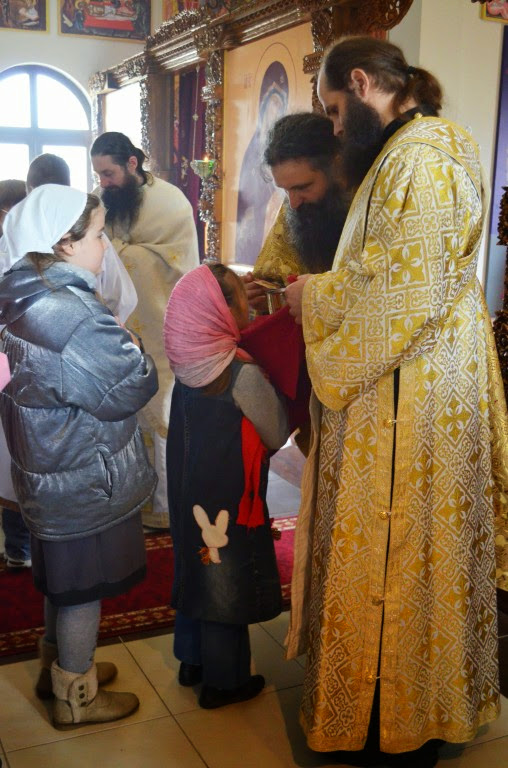 „А Свети апостол Павле, баш данас који се читао у Светом Апостолу каже: „На спасење и исцељење душа и тела.“ Али ако се неко недостојно причешћује, онда суд себи једе и пије, на осуду себи онда се причешћује. Зато је потребно браћо и сестре за Свето причешће да се припремамо. Света Црква је одредила како. Постом, молитвом, Светом тајном покајања и исповести. И очишћењем себе од тих грехова у тој Светој тајни покајања. Тако да када човек приступа Светој чаши да се причести, треба да је измирен са свима, да нема ни на кога мржњу, да не чини никакво зло дело, да показује љубав и смирење према свима, трпљење у невољама и страдањима, попут Господа нашега, који је све ове невоље и страдања претрпео из љубави према човеку и роду људскоме, да би нас људе ослободио од греха људи и ђавола.“