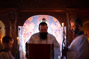 Истога дана увече Епископ Ксенофонт је служио Јутрење Великог петка на коме се читају дванаест Јеванђеља о страдању Господа нашега Исуса Христа.