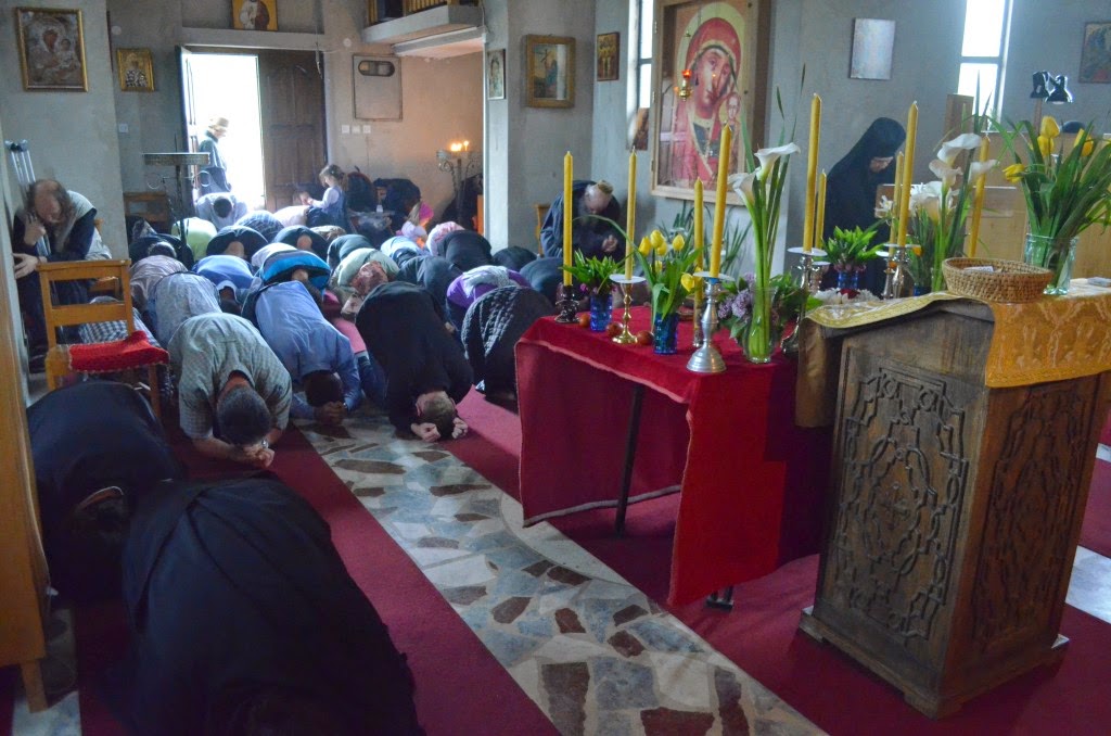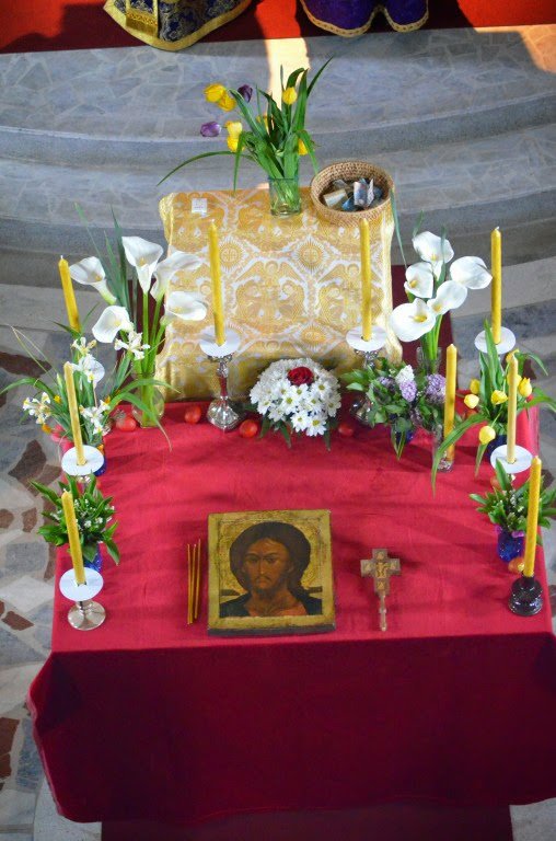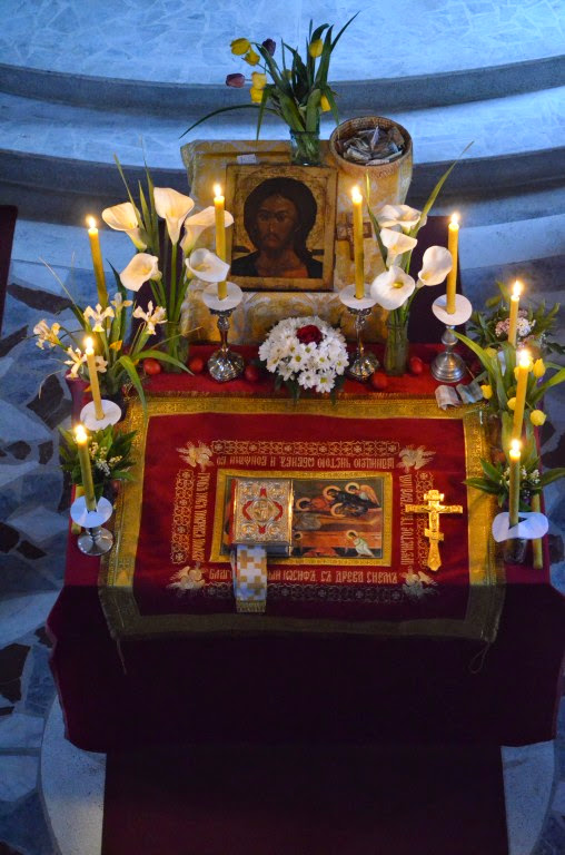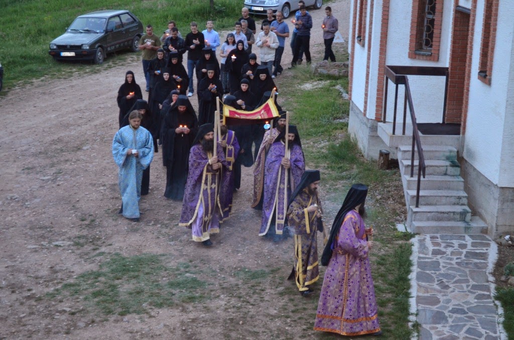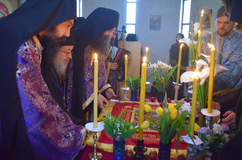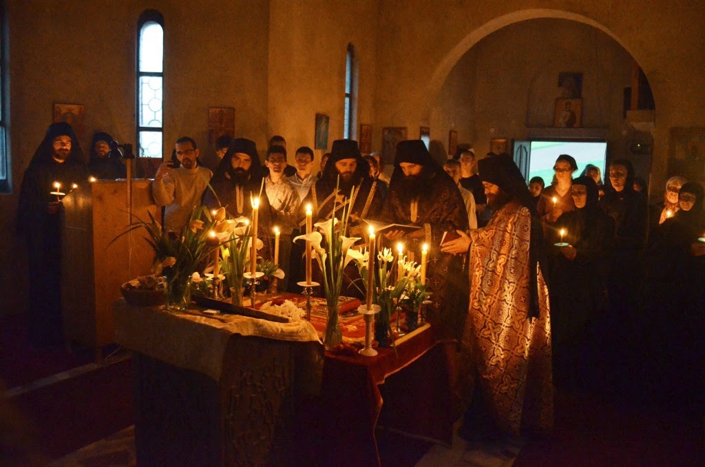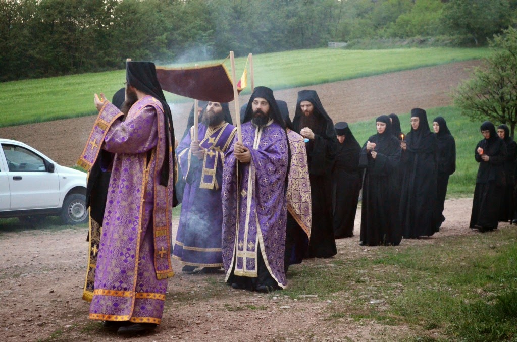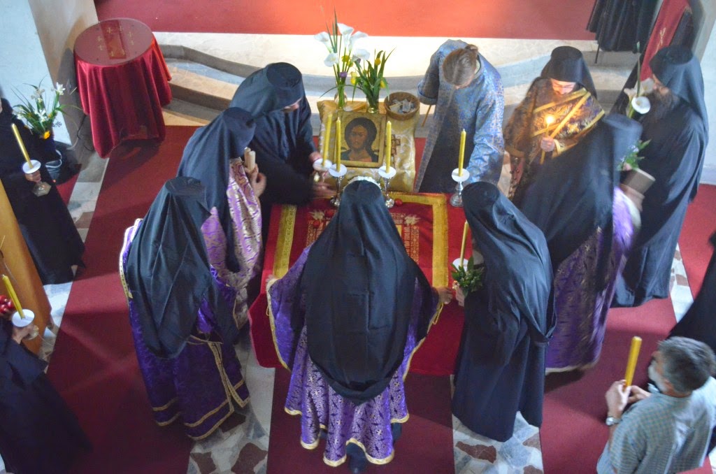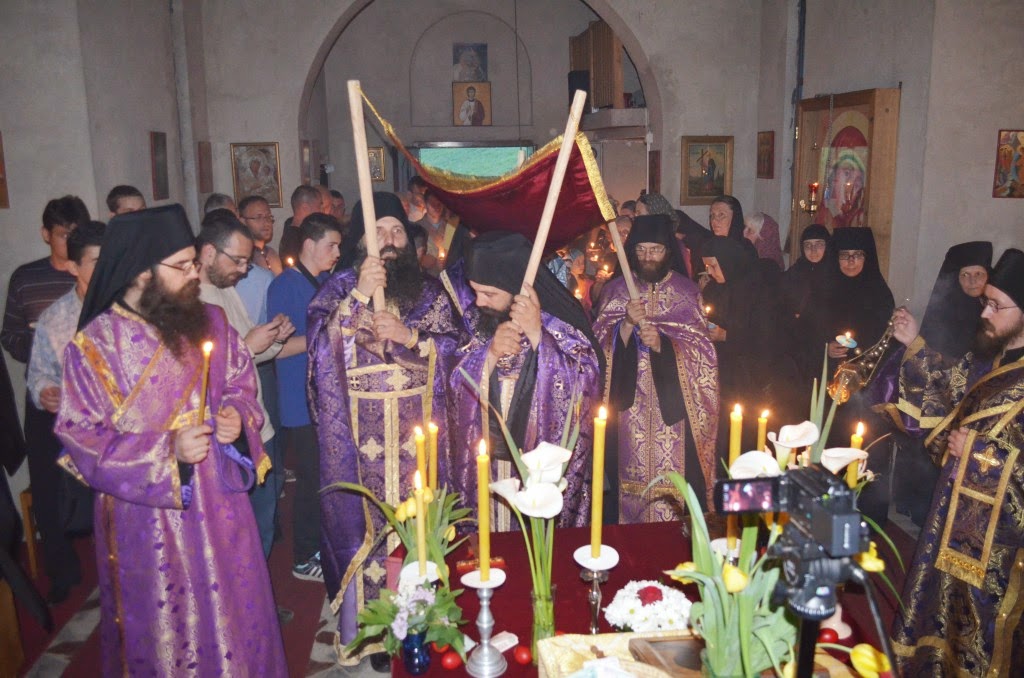 Свештеномонаси и свештенођакони Епархије у егзилу, изнели су Плаштаницу и три пута заједно са верним народом, обилазили око Цркве у Љуљацима. Плаштаница је заједно са Светим Јеванђељем положена на поклоњење и целивање верном народу.
