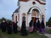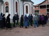 После беседе присутно монаштво и народ целивали су Господа изображеног на Плаштаници и положеног у гроб.
