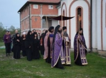 На Велики петак, 13/26. априла, Његово Преосвештенство Епископ рашко-призренски у егзилу Г.Г. Артемије, служио је Вечерњу Великог петка са изношењем Плаштанице у манастиру Светог Јована Крститеља у Љуљацима уз саслужење: архимандрита Варнаве (Димитријевића), протосинђела Варсануфија (Стошића), протосинђела Јована (Узелца), протосинђела Мартинијана (Ђурђевића), и јерођакона Паладија (Матића). Вечерњој служби је присуствовало око 70 верника.По изношењу плаштанице Владика се архипастирском беседом обратио присутном монаштву и народу: