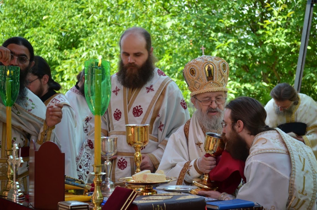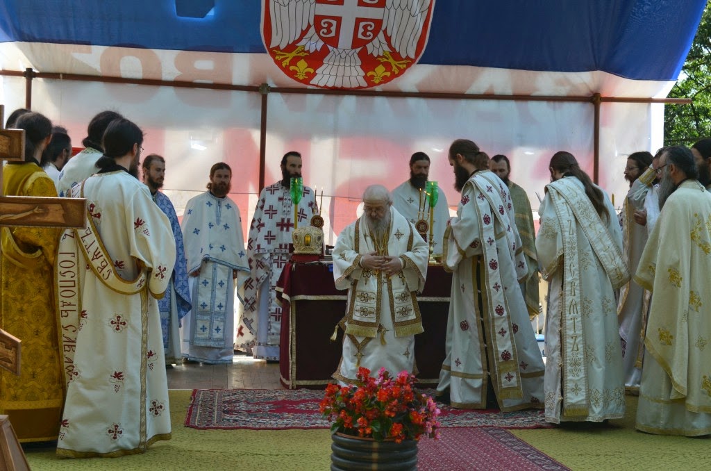 Његово Преосвештенство Епископ рашко-призренски у Егзилу, Г.Г Артемије, служио је Свету Архијерејску Литургију уз саслуживање великог броја свештеномонаха и свештенођакона, као и свештеника из Епархије.