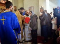 Залог славског колача за следећу годину преузела је протиница Весна Марић, супруга оца Жељка Марића.