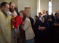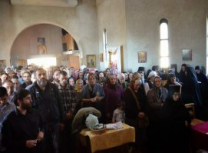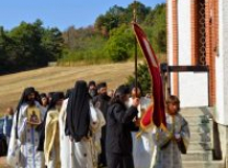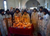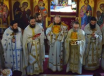 Светом Литургијом началствовао је архимандрит Николај уз саслужење више свештеномонаха, и свештенођакона из Епархије у Егзилу.