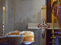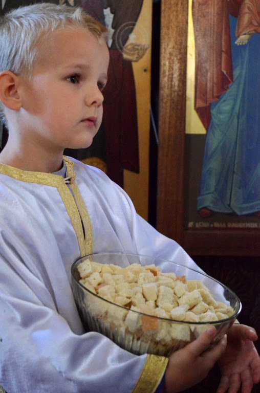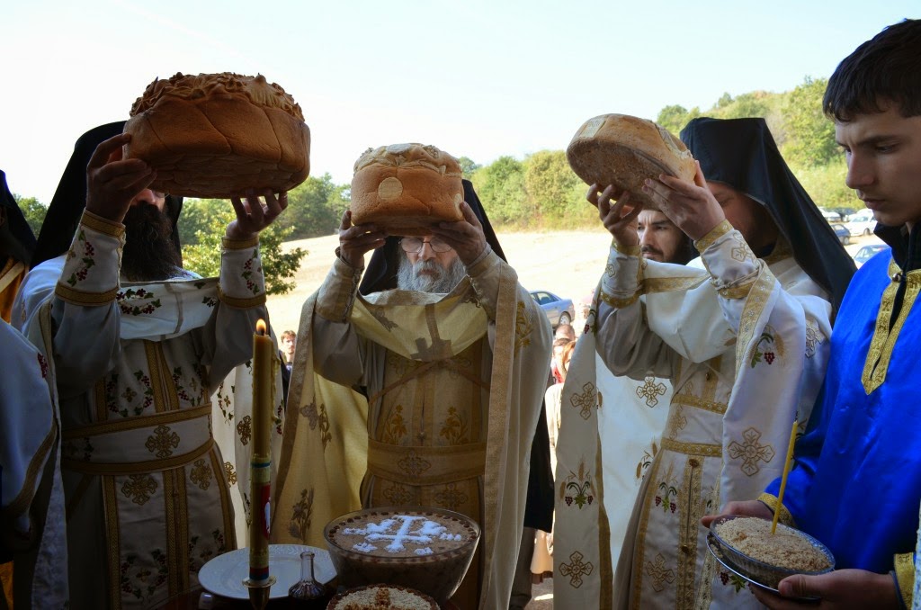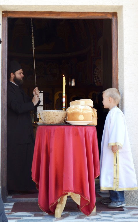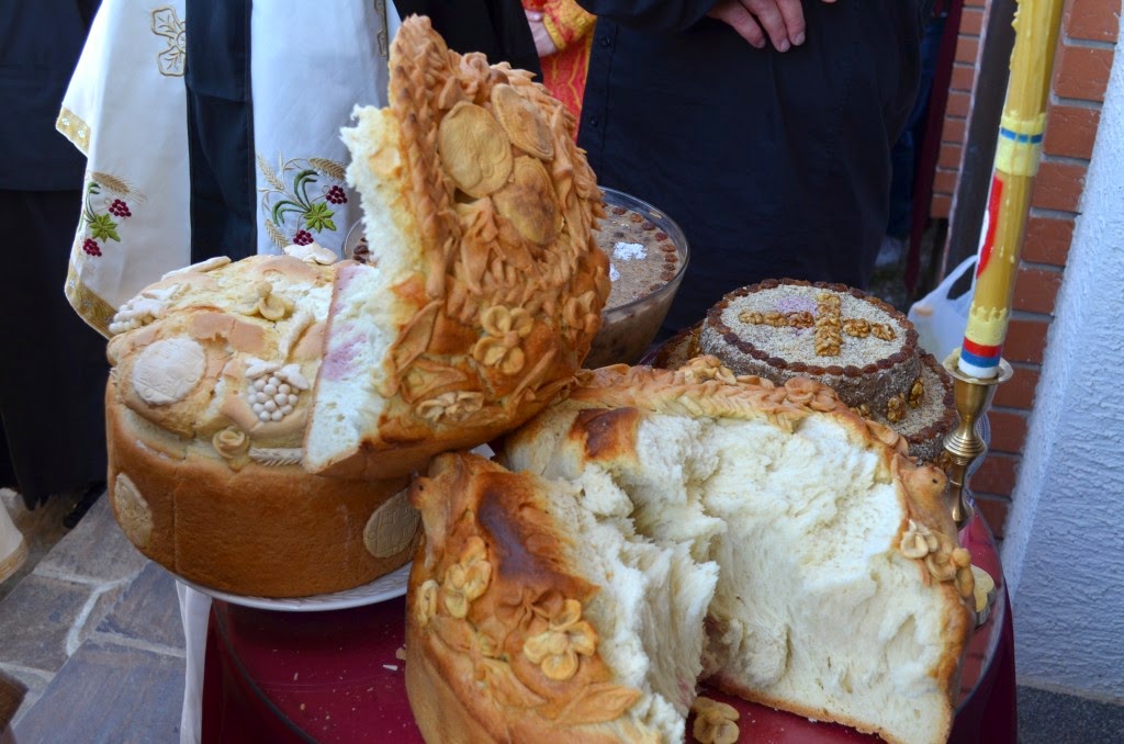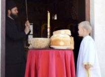 Након Свете Литургије извршен је чин благосиљања и освећења славског колача и жита, које је припремио настојатељ Варсануфије са својом братијом, као и многобројни верници, којима је овај велики празник крсна слава.