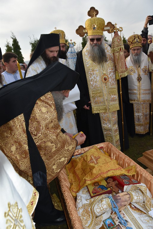 Велику је снагу духовну имао. То смо осећали. Свака његова реч била је на месту, свака његова реч допирала је до срдаца наших. Када смо се овако окупљали када је он беседио он је говорио: „Ево ја и деца коју ми даде Бог“. Ево, Аво и деца твоја и народ овај православни, српски који ти даде Бог. Истински си Богу служио, много си се трудио, много шта претрпео, баш онако како си нас учио, то си прво испунио, па онда и нама саветовао. Имала је снагу свака реч и сваки поступак, све је било поучно, све је било у духу Православља, све је било светоапостолско, светоотачко, светопредањско. Пример тај, живота твога монашкога и светоотачкога, епископскога је нама пример, нама поука. Трудили смо се да те не ожалостимо овде на земљи, трудићемо се и сада да ништа не чинимо оно што ти ниси волео, што није Богу угодно, што ти ниси волео да ми чинимо”, нагласио је владика.