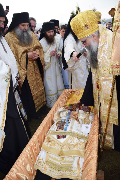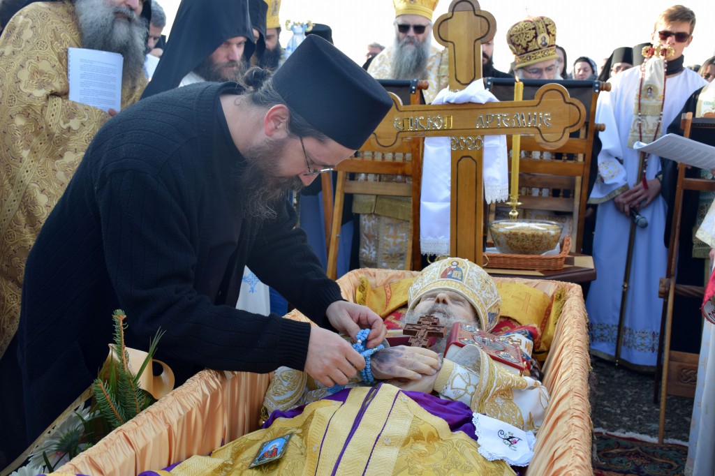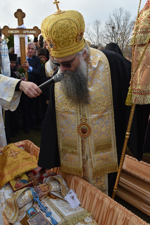 „Сабрали смо се данас, духовно осиротели, у ово Божје село Лелић, да се молитвено опростимо од нашег најдражег и вољеног, духовног пастира и Владике Артемија. Верујемо да само Бог зна са коликом синовском тугом су испуњена наша срца, због представљења нашег духовног оца и наставника нашег спасења. Као што нам је немогуће да речима изразимо оно што у срцу сада осећамо, још нам је теже да у овој опроштајној речи, са нашим вољеним духовним оцем и Владиком, обухватимо свеукупни његов живот, проткан огромним трудом и ревношћу у његовом служењу Богу и роду. Зар може муцави људски језик да искаже сву ту свету и светлу тајну личности оног побожног лелићког дечака, пониклог из благочестиве породице, из овог светородног лелићког села, који је прерасто у духовног горостаса, толико великог и снажног, да придржи заљуљани брод наше Цркве и нашег народа, на бури савременог безбоштва? Једино је Срцезналцу Богу, пред Киме нема ничег сакривеног, позната сва тајна горостасне личности нашег вољеног пастира и духовног оца Артемија. А нама је познато да је ишао оним јеванђелским путем, који је утабан страдањима и трпљењем Христа ради, којим су прошли и до Раја дошли, сви светитељи Божји. Носио је смирено и трпељиво наше косовско распеће и гоглоту кроз коју пролази наша Црква и народ данас. Служити Богу, а не времену, јесте завет светоотачки, али и главни животни мото Владике Артемија. Нема тог непријатеља Бога и Цркве у Србији и шире, коме владика Артемије није изашао на биљегу, суочио се са њим, по цену ма којих страдања”.