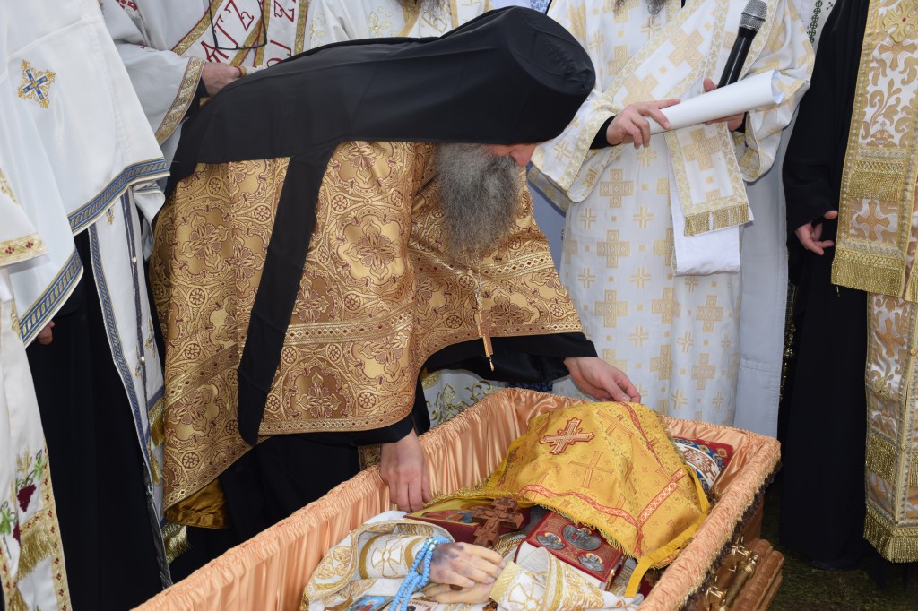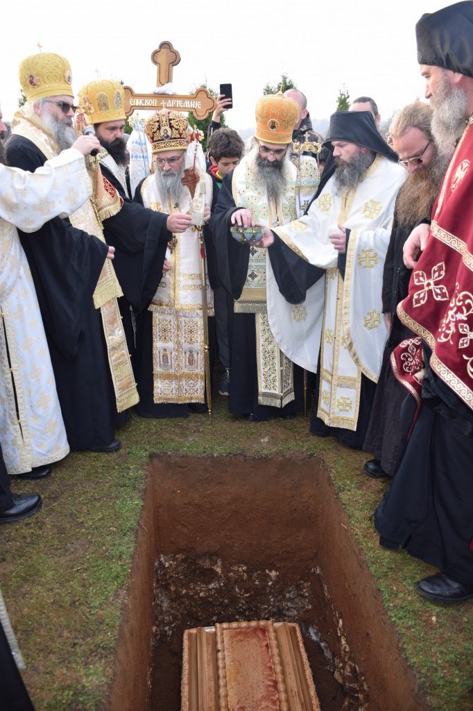 После завршеног опела ковчег са земним остацима блаженопочившег Владике Артемија је рукама његових монаха литијски пренето до гробног места где ће чекати други долазак Христов. Поред гробног места су се од свог духовног оца и Владике опростили Милоје Стевановић ктитор манастира Светог Николаја у Лозници код Чачка и Јована Баљошевић из Ораховца испред косовскометохијских Срба.