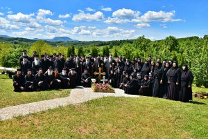 Након трпезе љубави, поред гроба блаженопочившег Владике Артемија, направљена је заједничка фотографија архијереја монаштва и присутног народа.