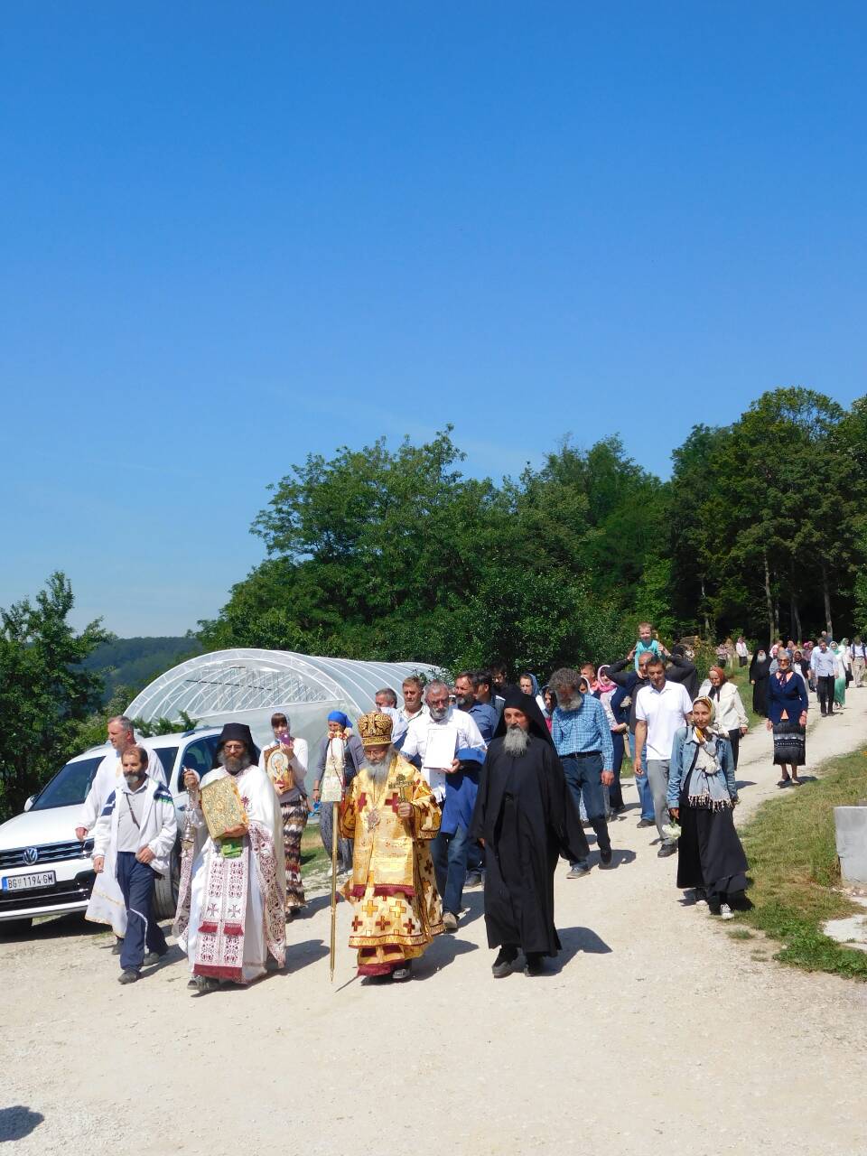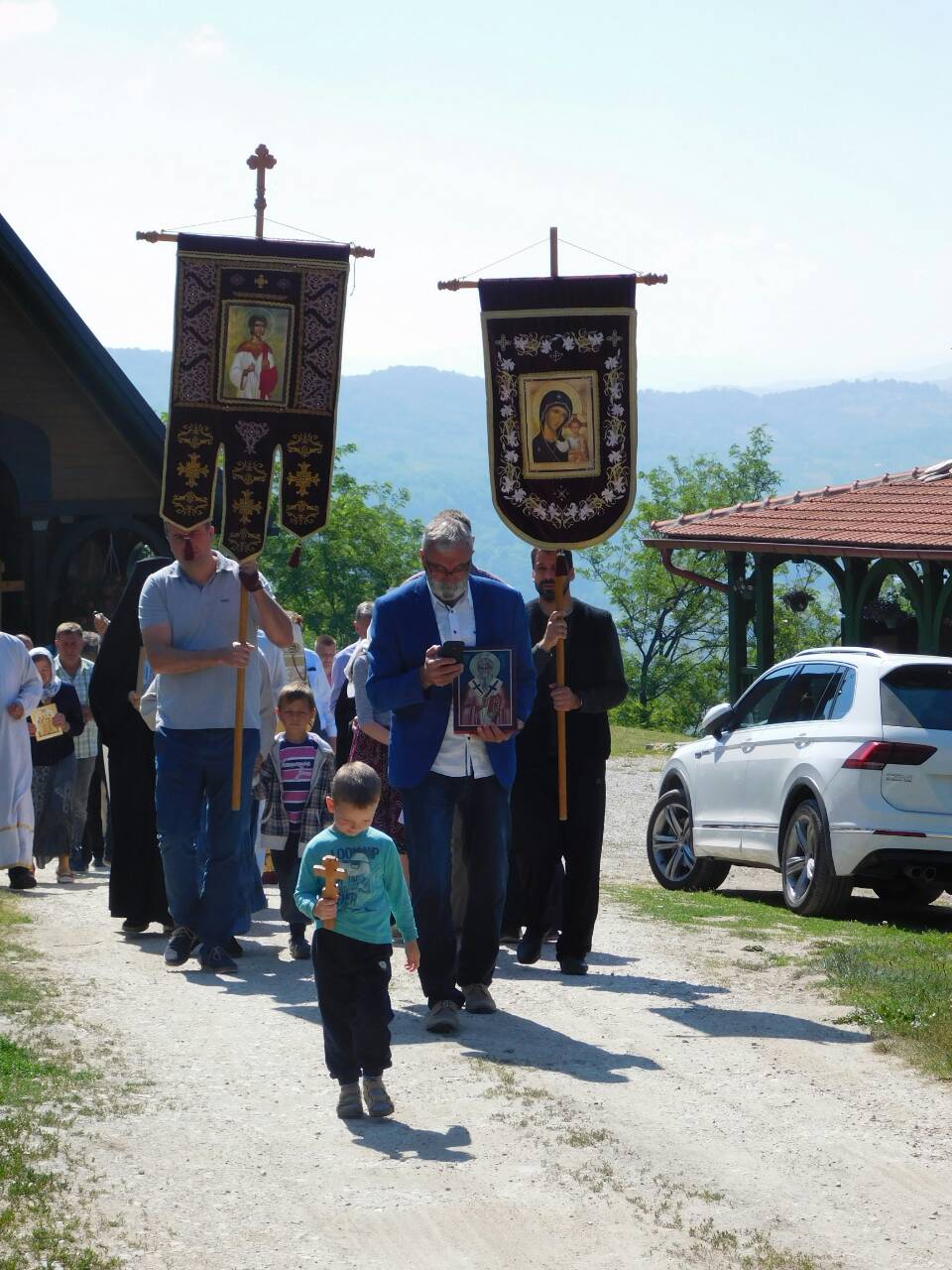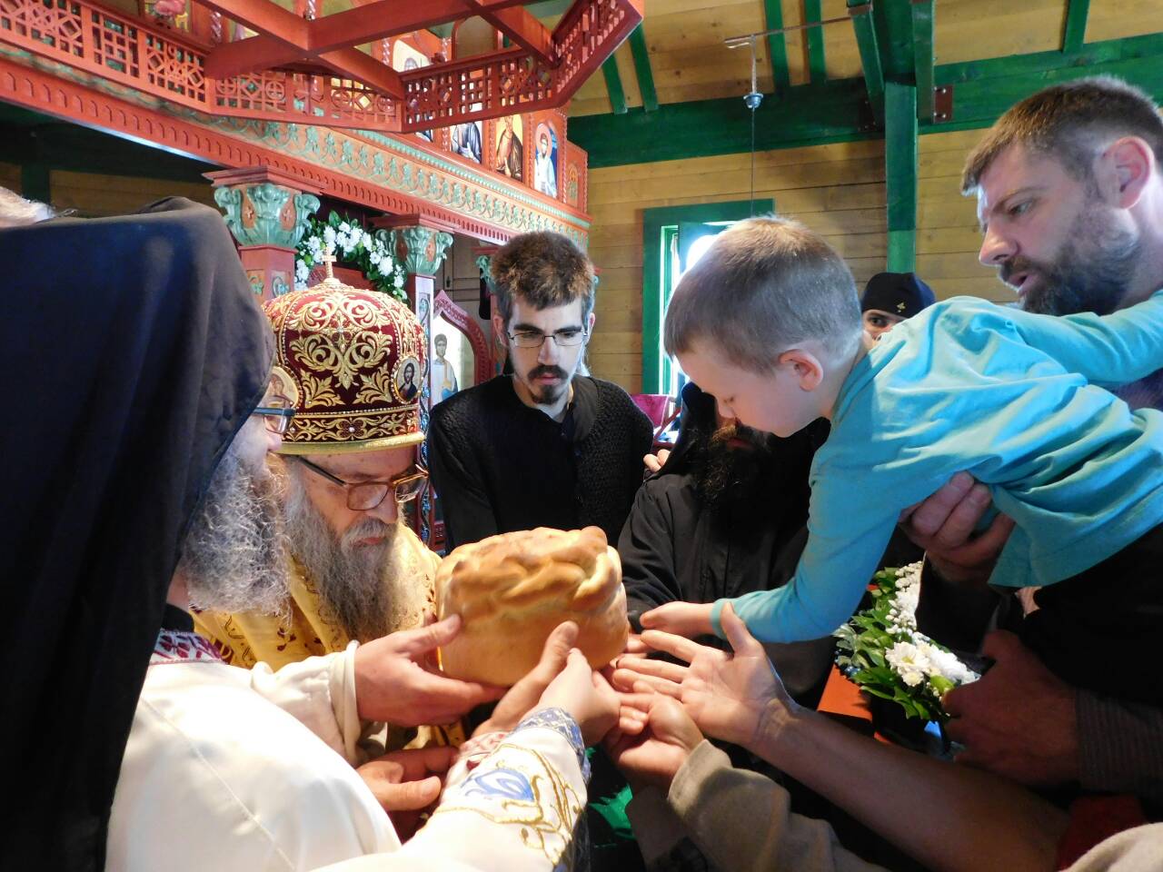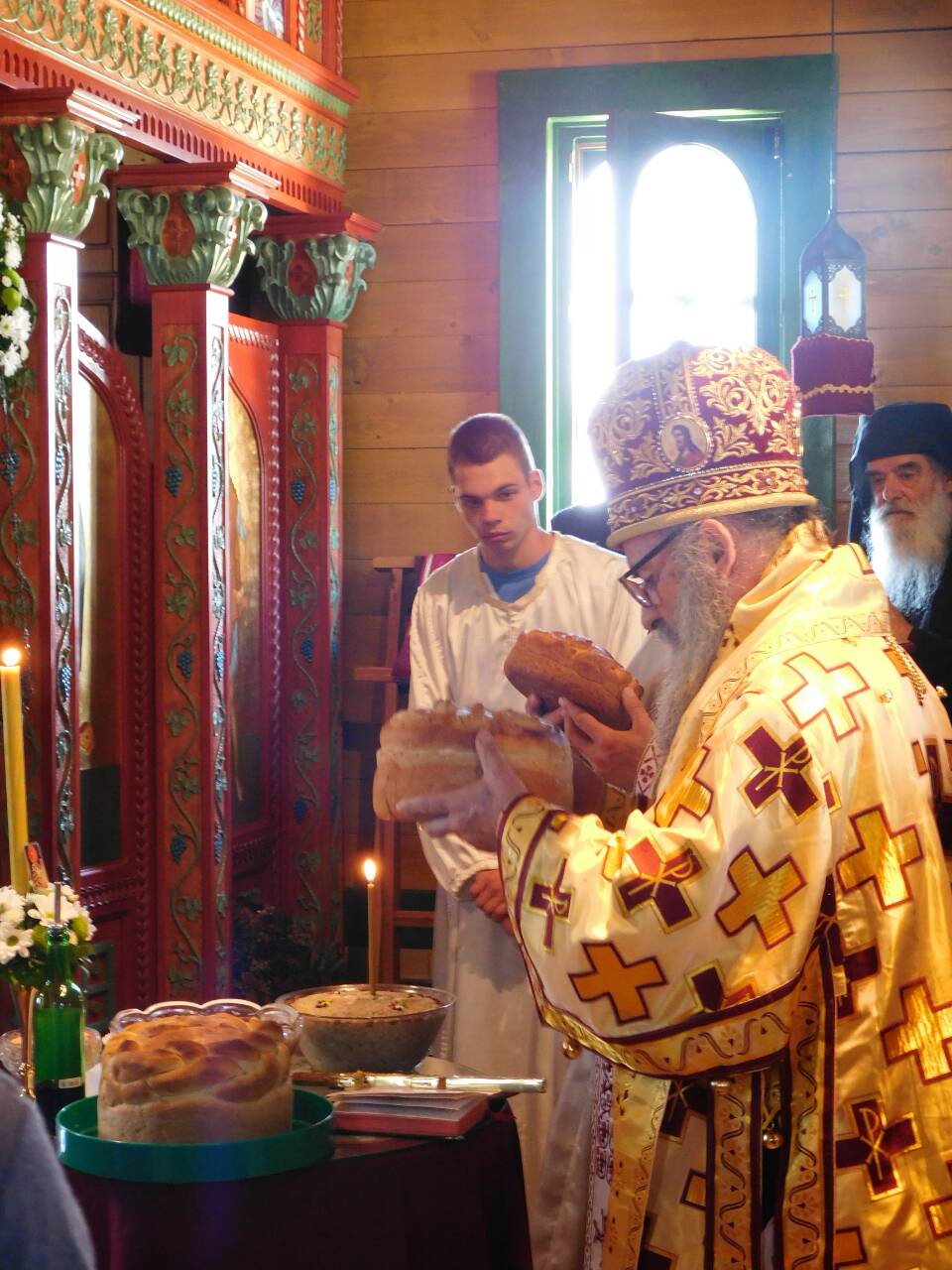 Након Литургије владика Николај је извршио чин резања славског колача и благосиљања жита које су принели братство манастира и ктитор манастира Милош Стефановић из Ариља.