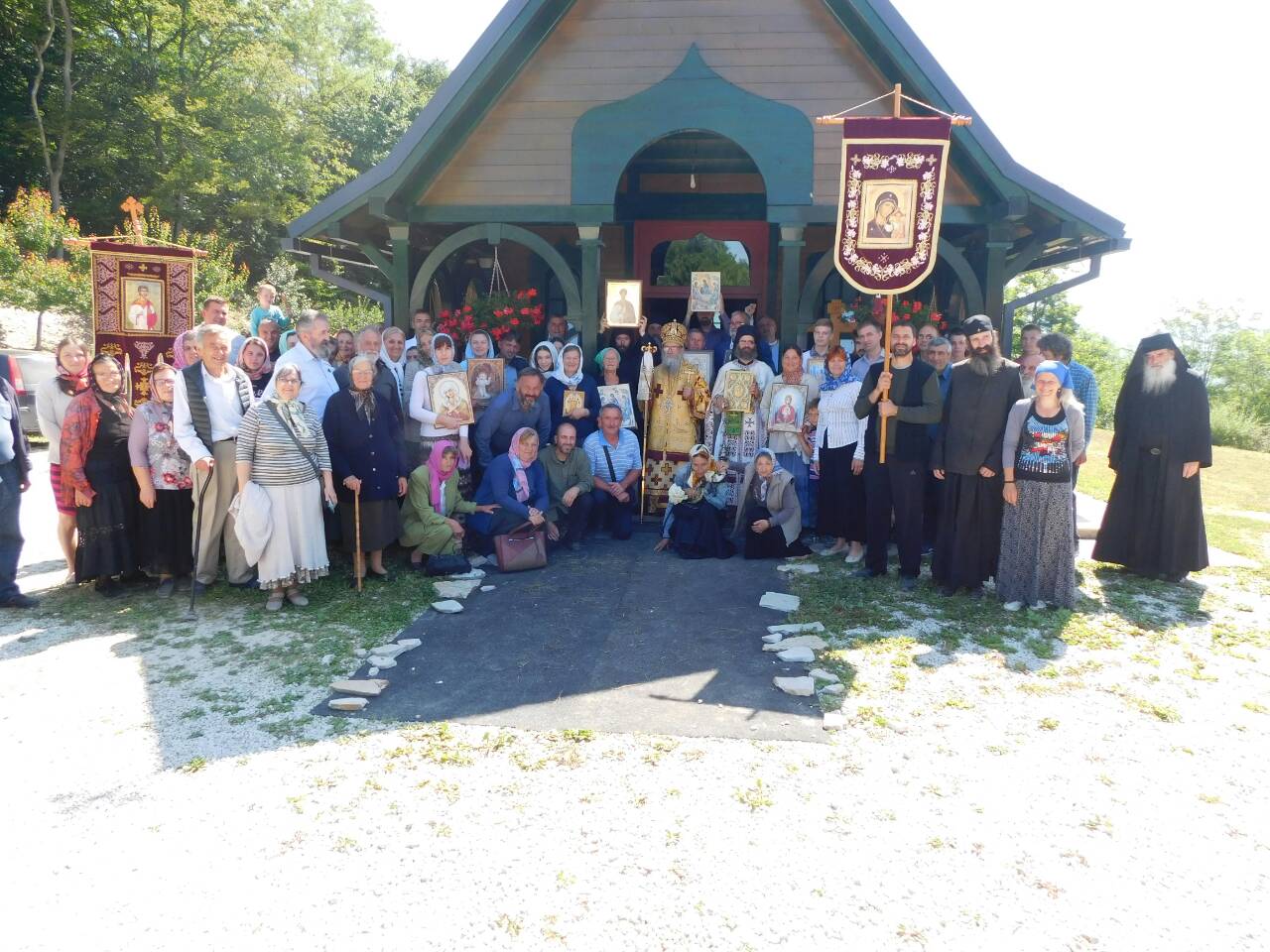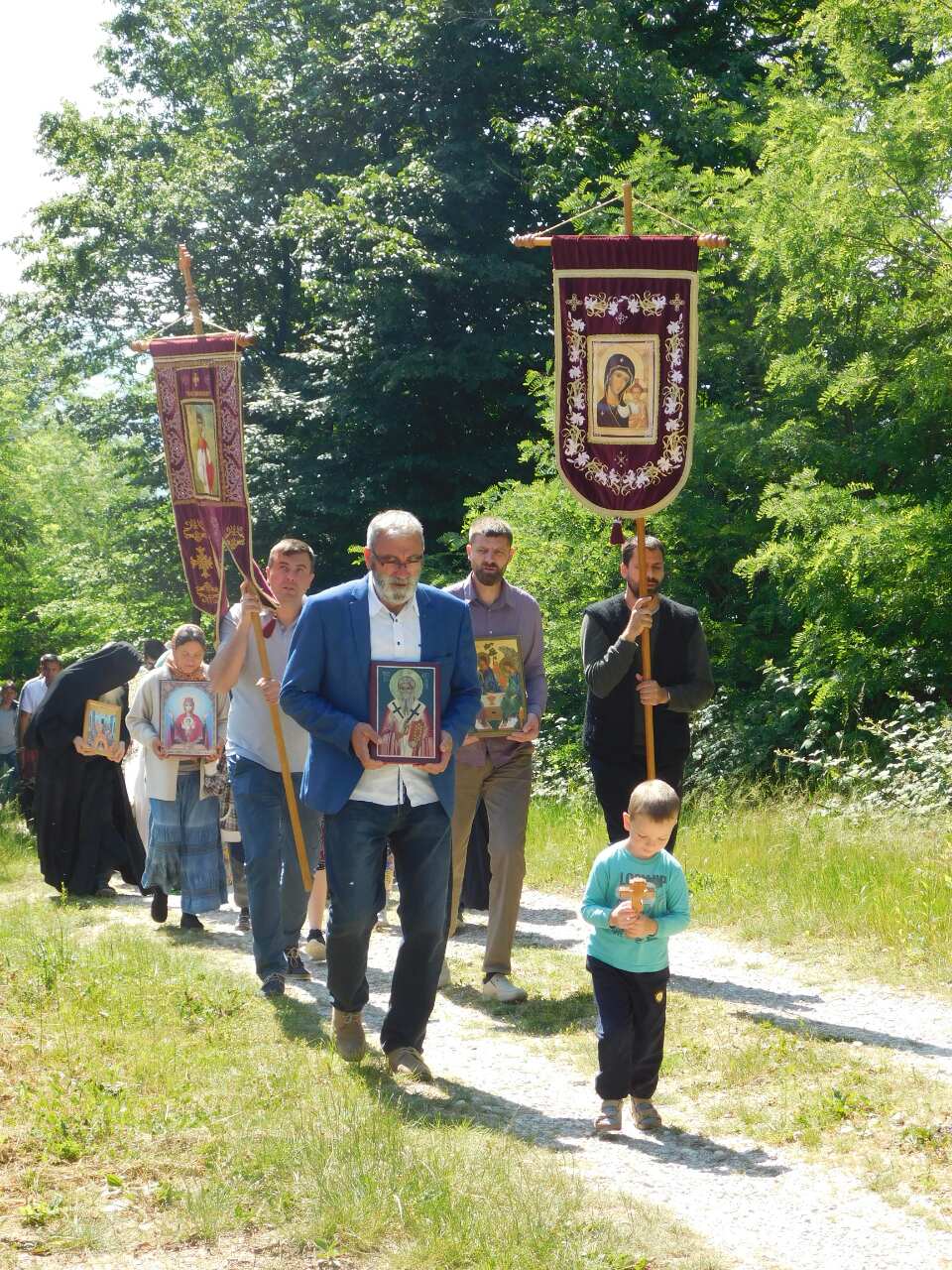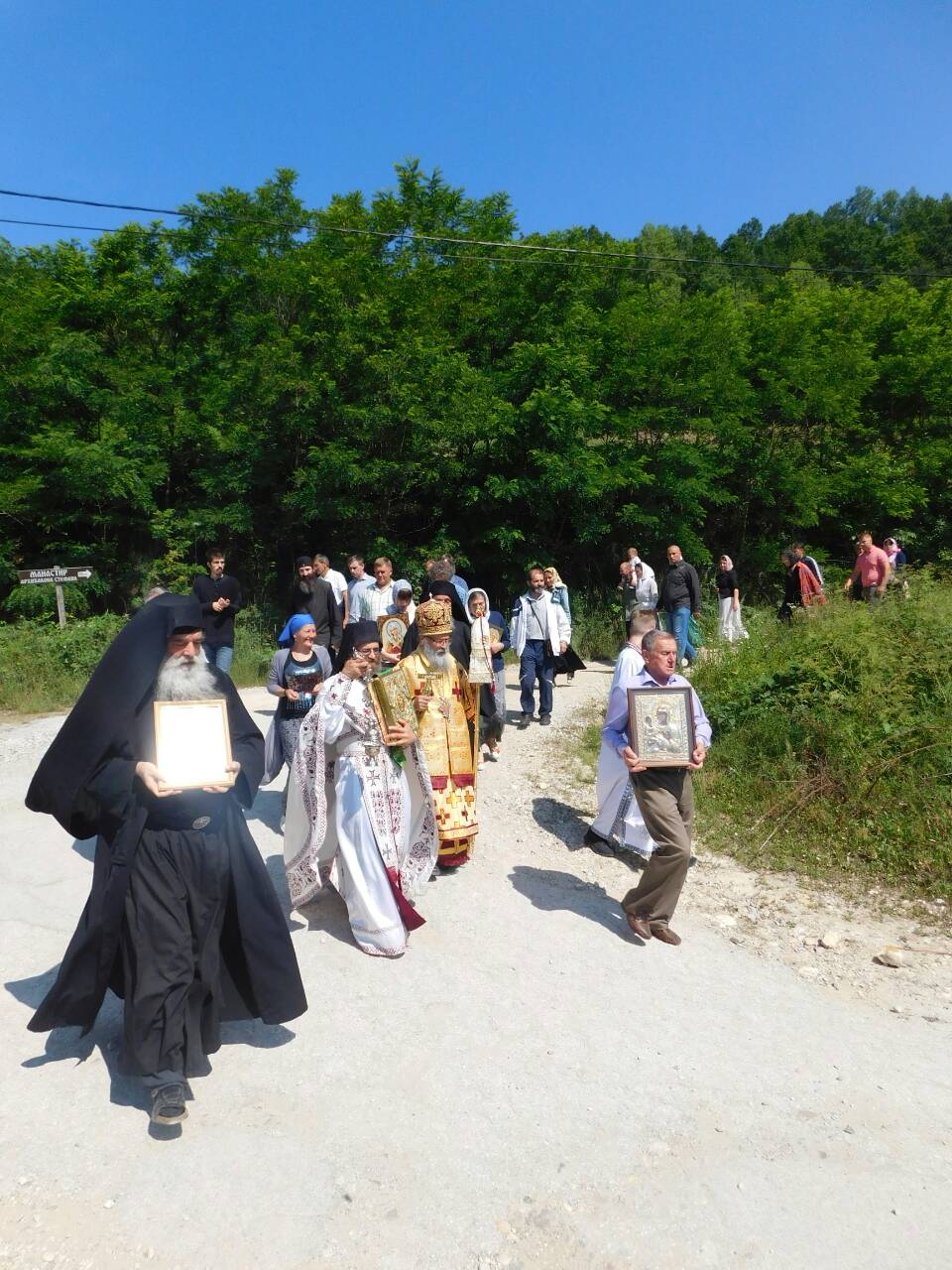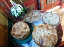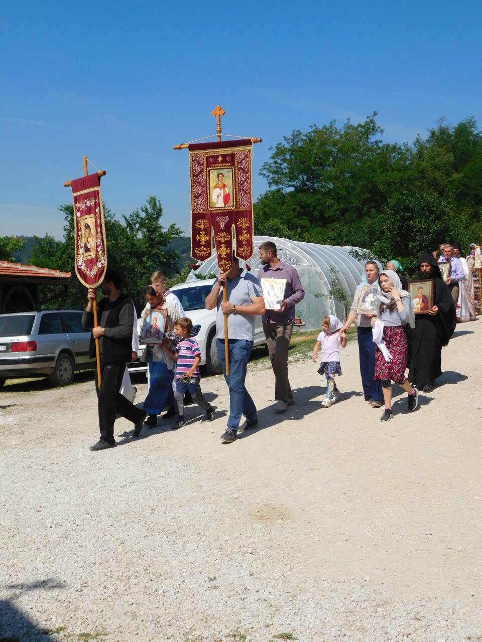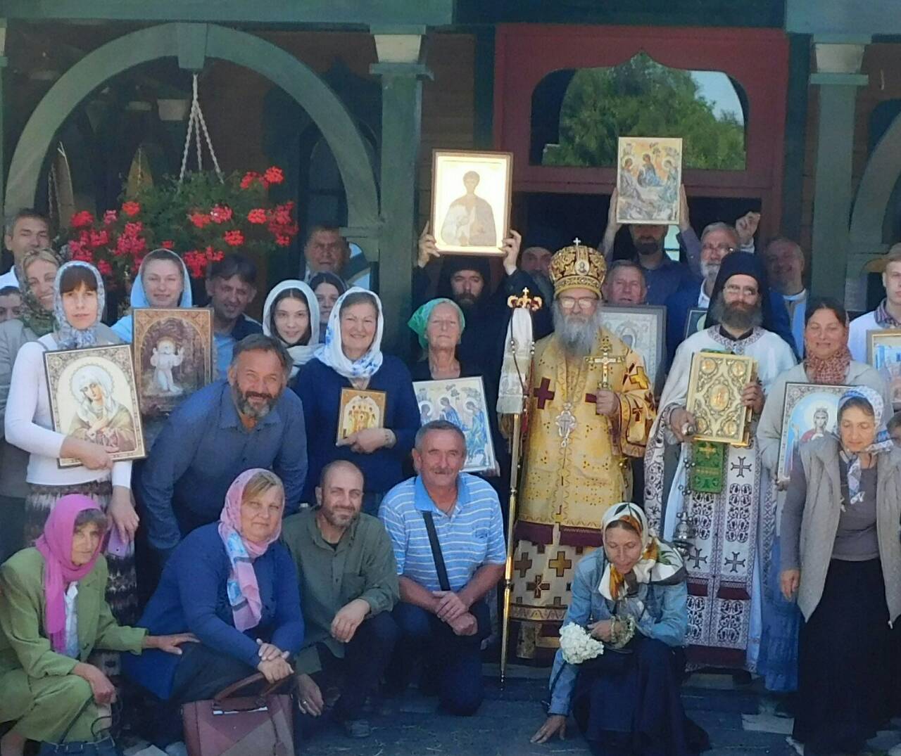 Након Литургије владика Николај је извршио чин резања славског колача и благосиљања жита које су принели братство манастира и ктитор манастира Милош Стефановић из Ариља.