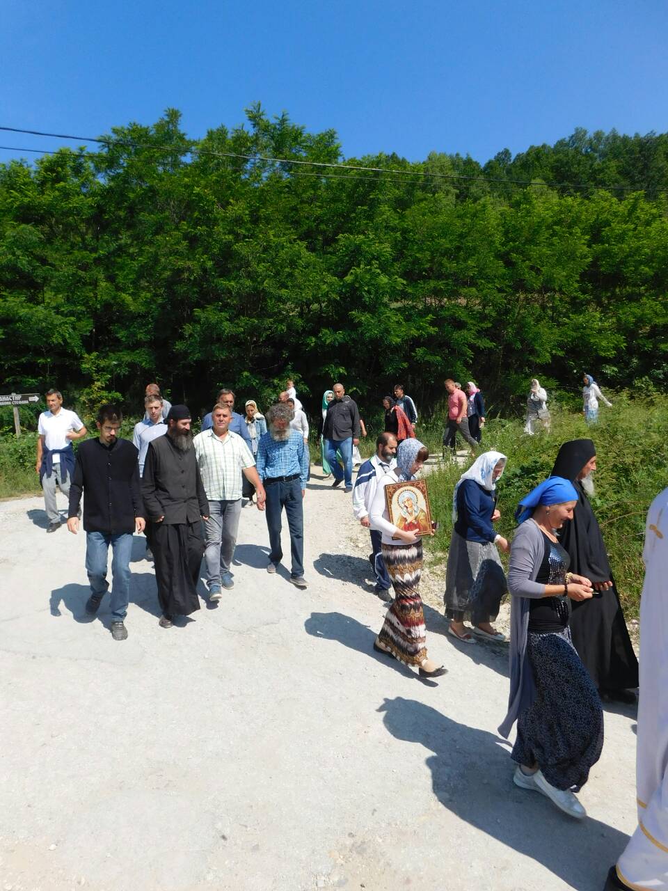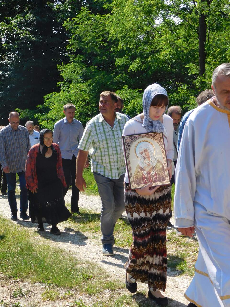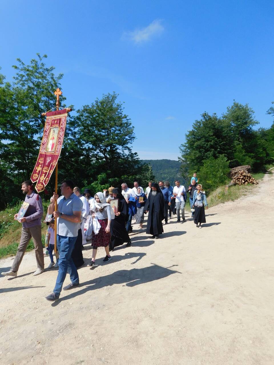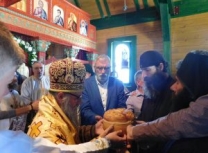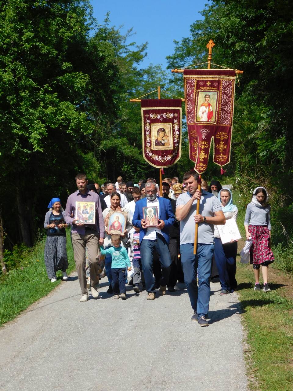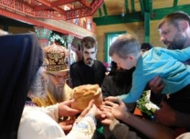 Након Литургије владика Николај је извршио чин резања славског колача и благосиљања жита које су принели братство манастира и ктитор манастира Милош Стефановић из Ариља.